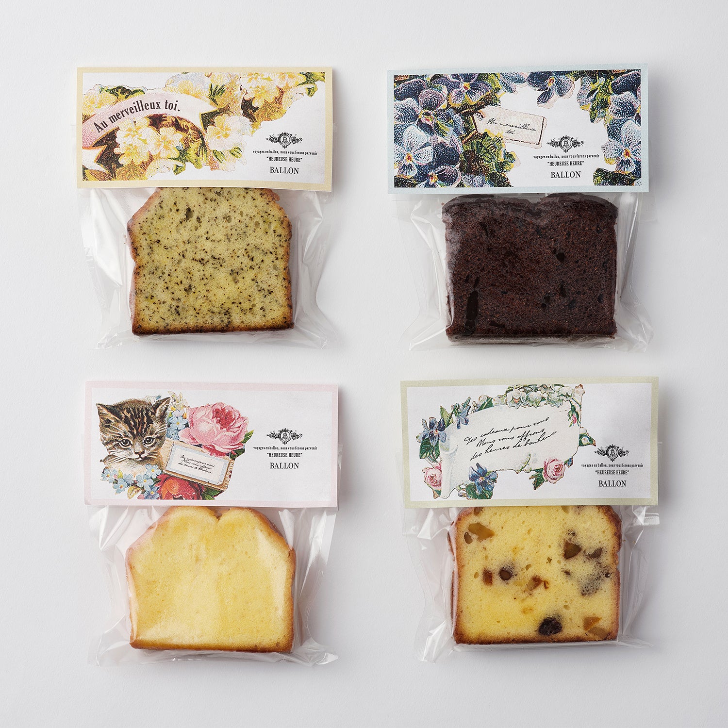すみれ工房さんのパウンドケーキの今年のデザインは、アンティークの絵柄から4種のフラワーをデザイン。
