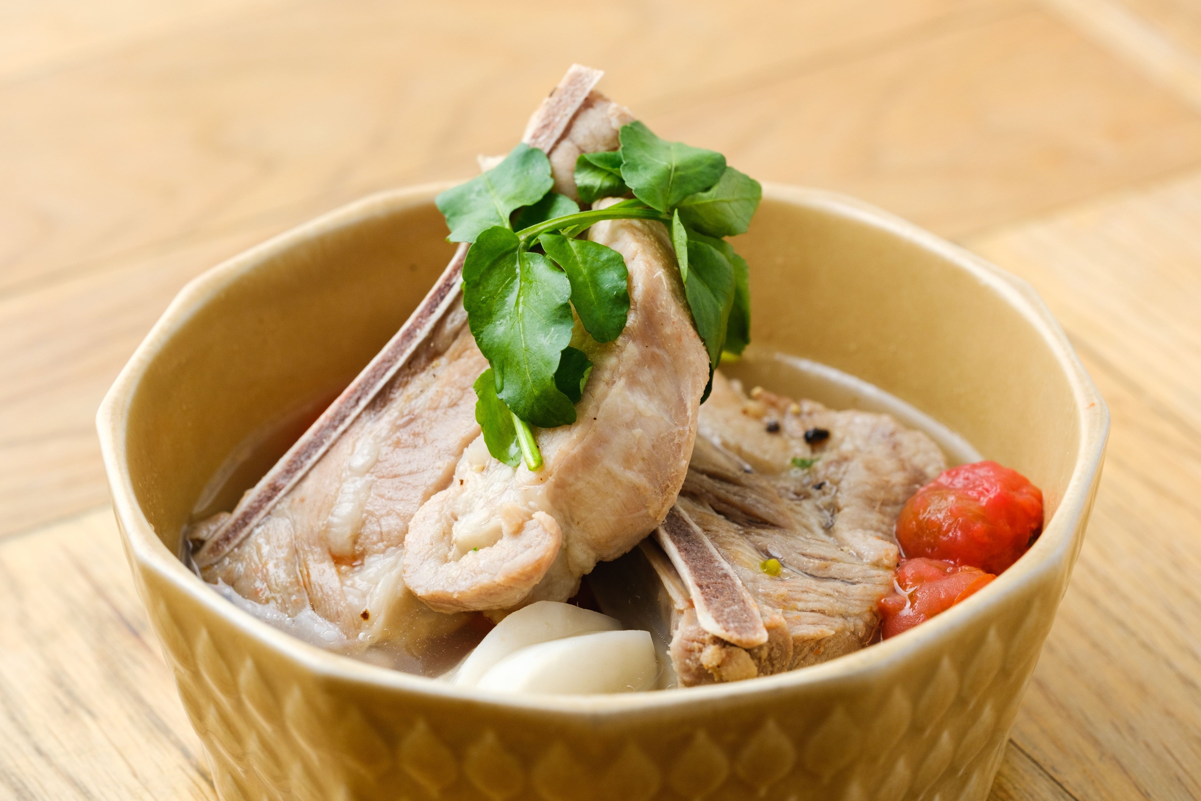 食べ応え抜群の柔らか塩豚スペアリブでごちそう感満載。