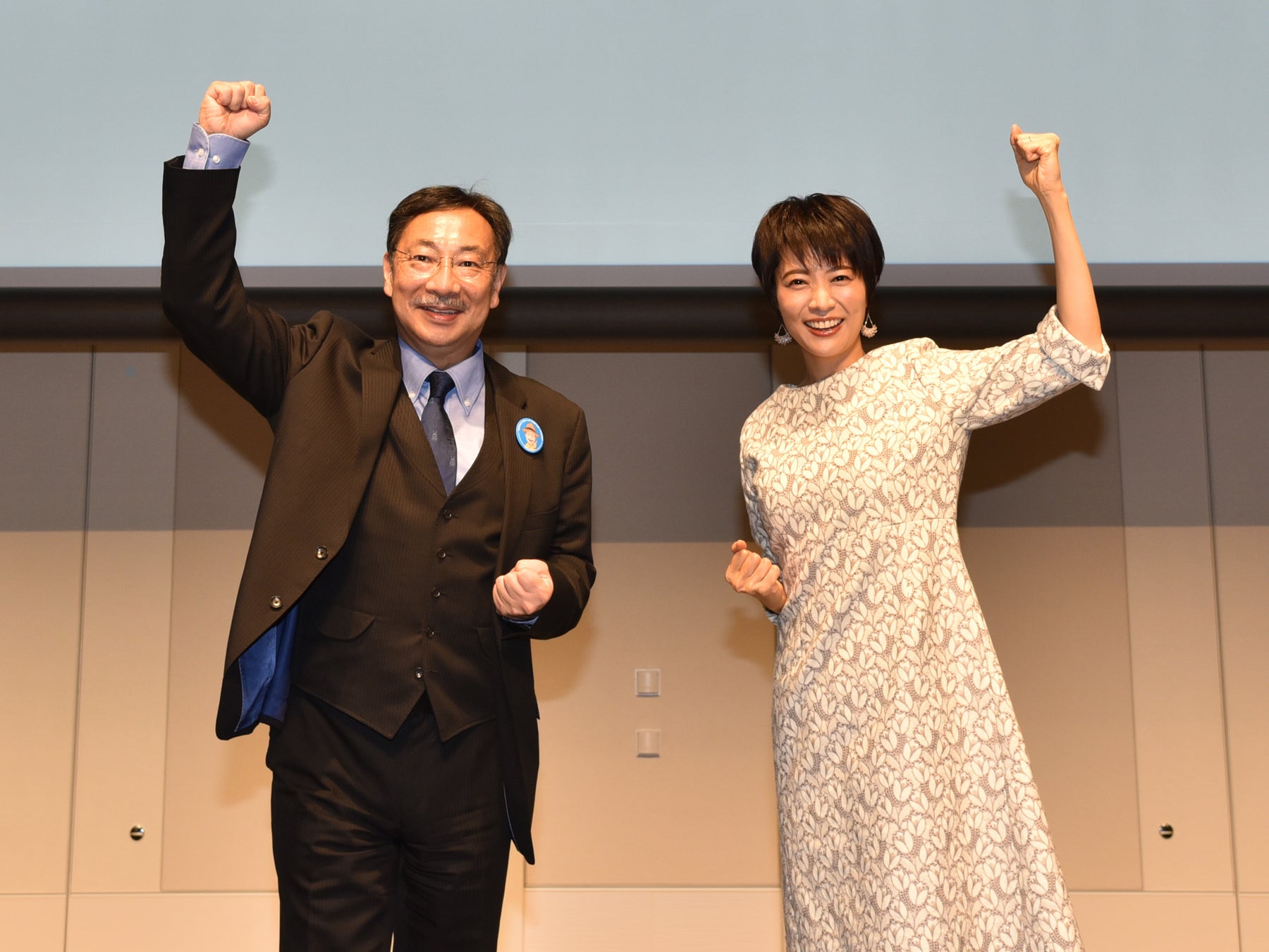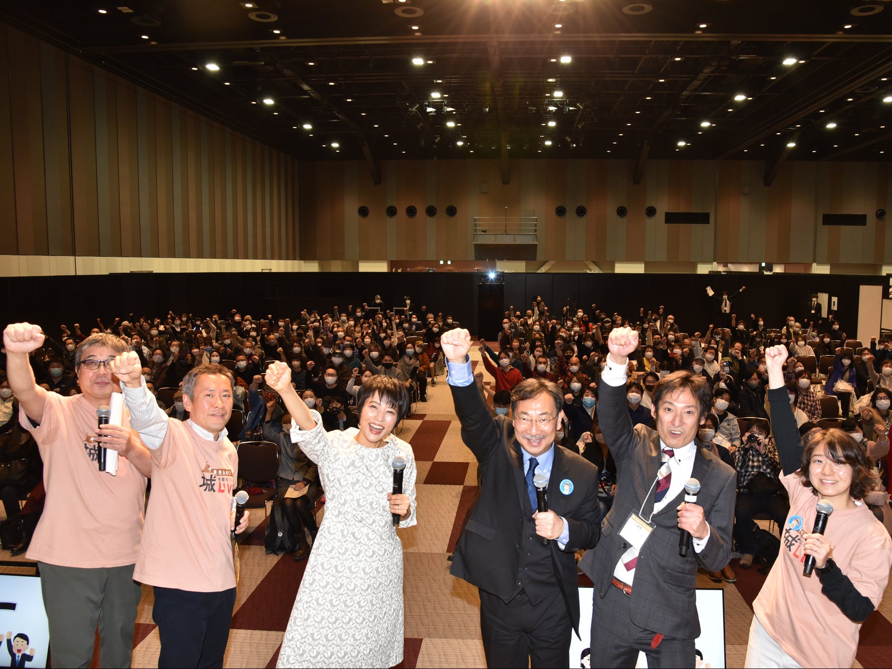 “お城マスター”千田嘉博先生、城好き俳優・村井美樹さんが、12月19日(日)、横浜で開催された「お城 EXPO 2021」にて、来年2月から始まる『日本最強で不滅の城ライブ』の出陣式を行いました。