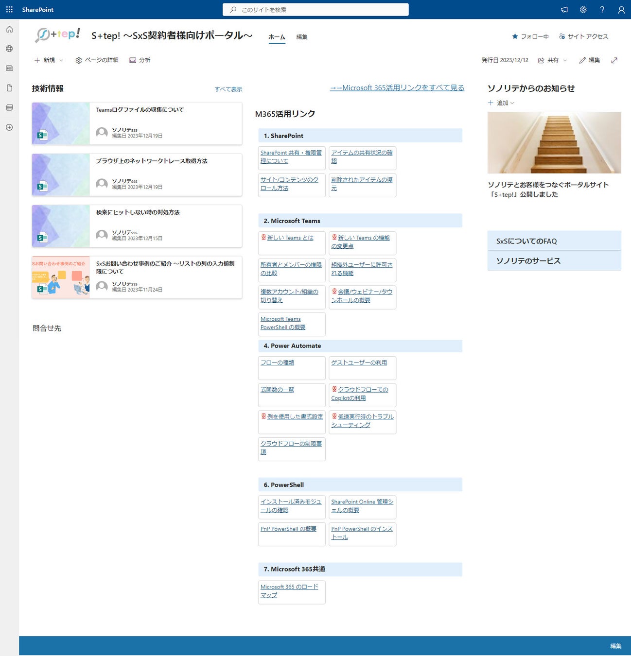 「S+tep!」は、ズバリ、Microsoft 365 関連技術についての問い合わせをすることなく情報を集めに行けるサイトです。