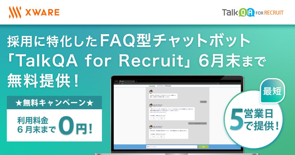 【無料キャンペーン開始】採用に特化したFAQ型チャットボット 「TalkQA for Recruit」を6月末まで無料で提供!