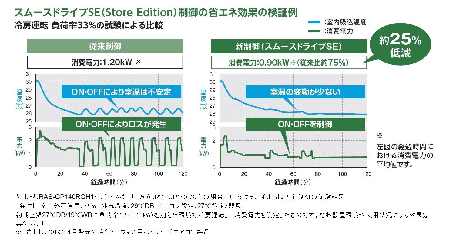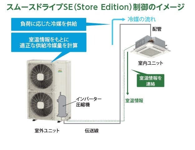 ・圧縮機のON・OFFを抑えてスムーズに省エネ運転:スムースドライブSE (Store Edition)