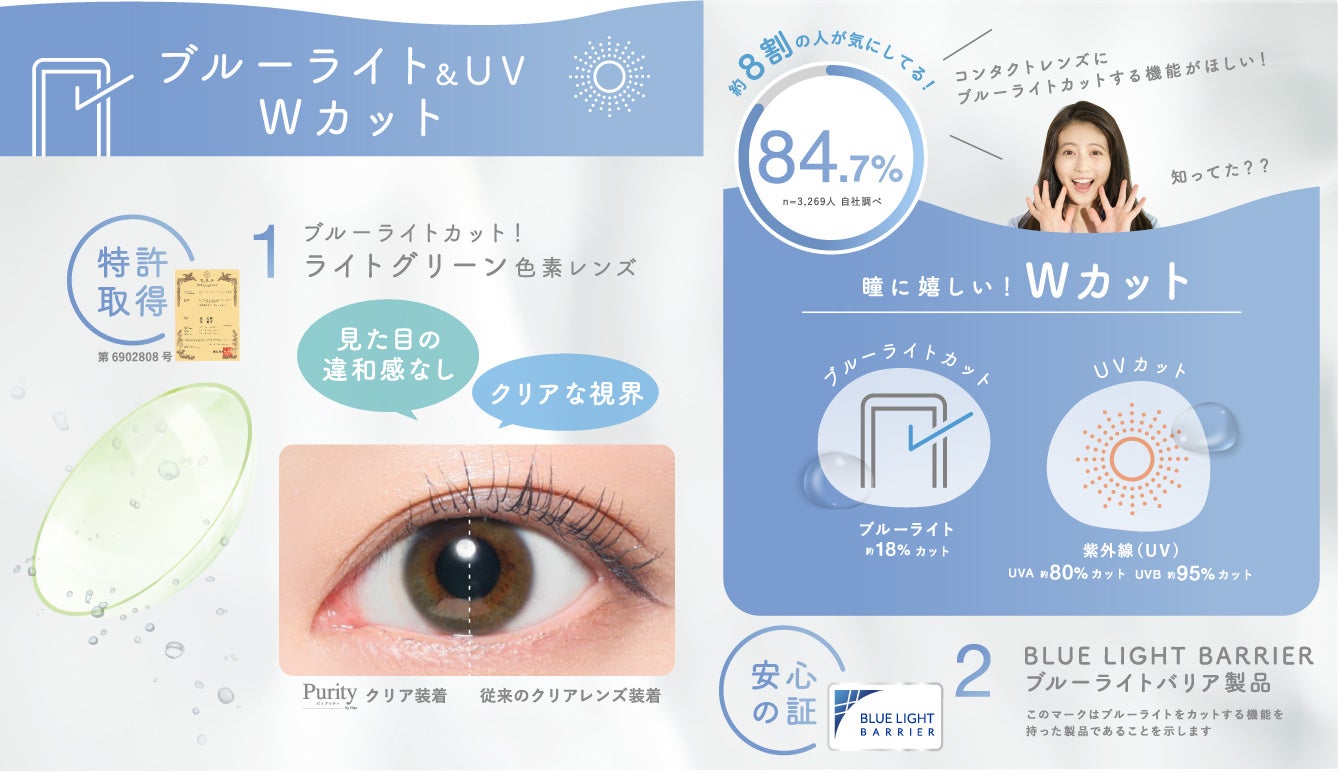 商品開発時に行った市場調査※では「コンタクトレンズにブルーライトカットをする機能が欲しい」と答えた方は84.7%と多く、8割以上の方がブルーライトを気にしている結果となりました。
