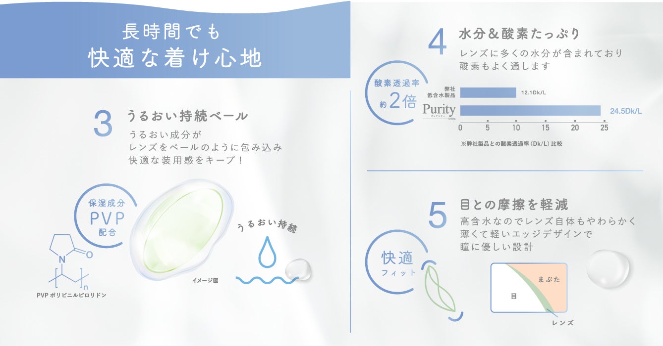 目の負担にも繋がるブルーライトをカットする機能は全世代で多くの方が「コンタクトレンズに入って欲しい重要な機能スペック」の1つに挙げられています。日々頑張っているあなたの瞳を装用するだけで、いたわりながら「守る」。という想いが込められたブランドです。