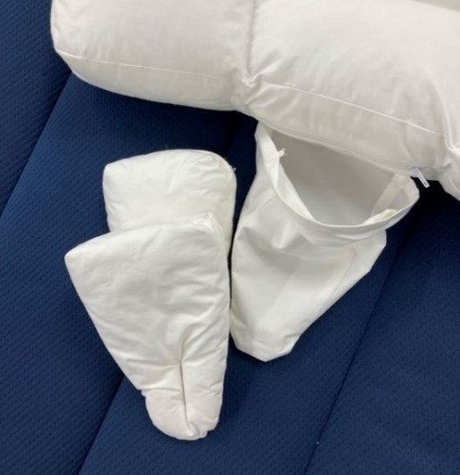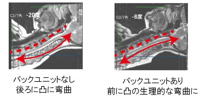 ●首への負担を軽減・・・バックユニットが、背中上部と敷き寝具の隙間を埋め、首のカーブを正しいに状態にキープします。中に入っている2つのクッションで、厚みの調節が可能です。