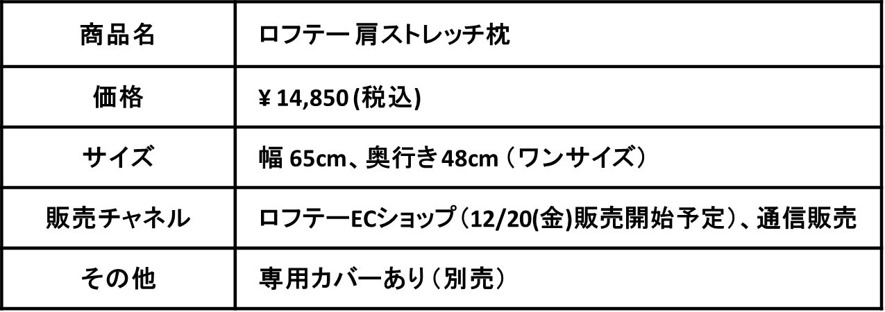 ロフテー株式会社(東京都千代田区、代表取締役社長:吹田龍平太、以下「ロフテー」)は、「ロフテー肩ストレッチ枕」を12/10(火)より販売開始いたします。