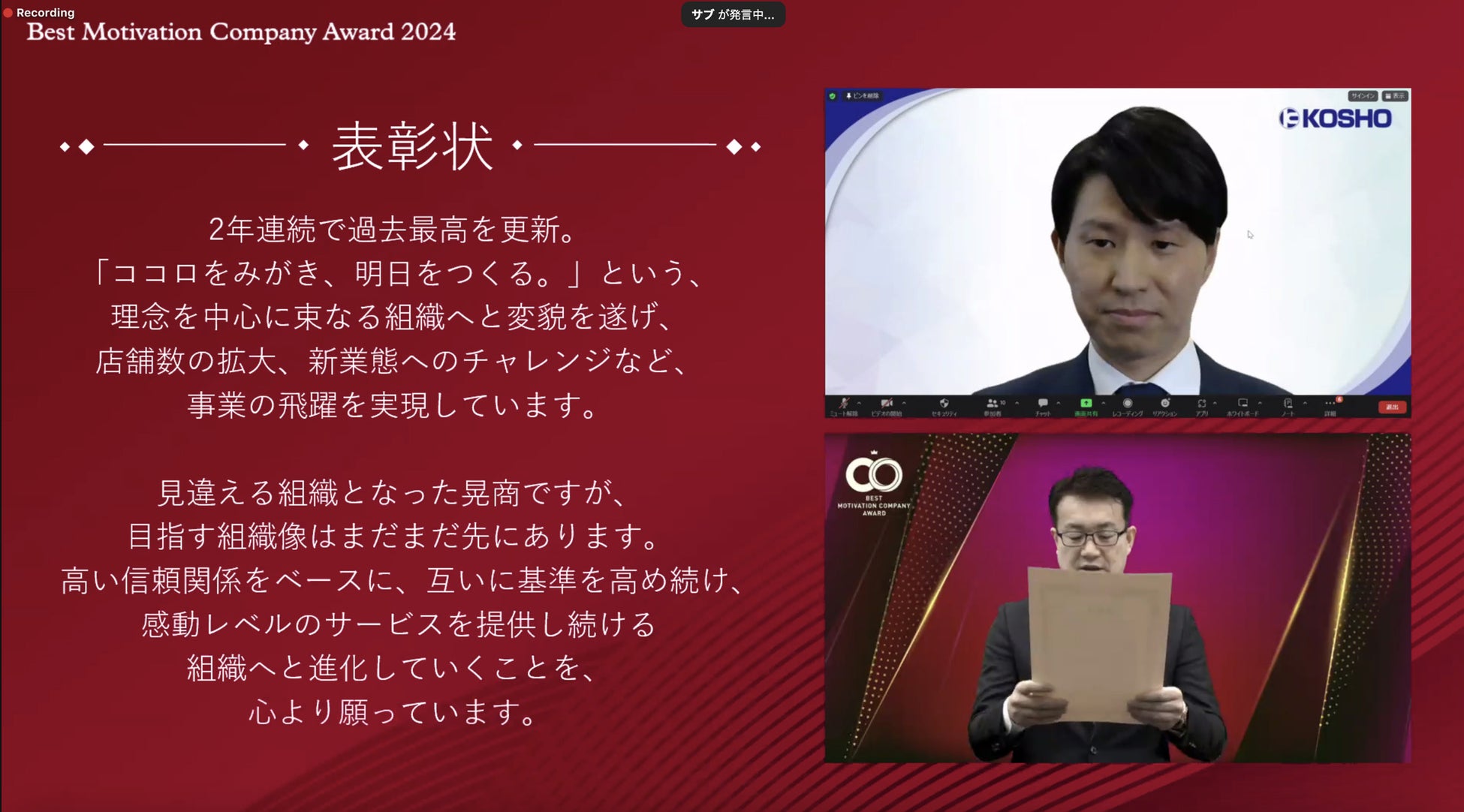株式会社 晃商が「ベストモチベーションカンパニーアワード2024」を受賞