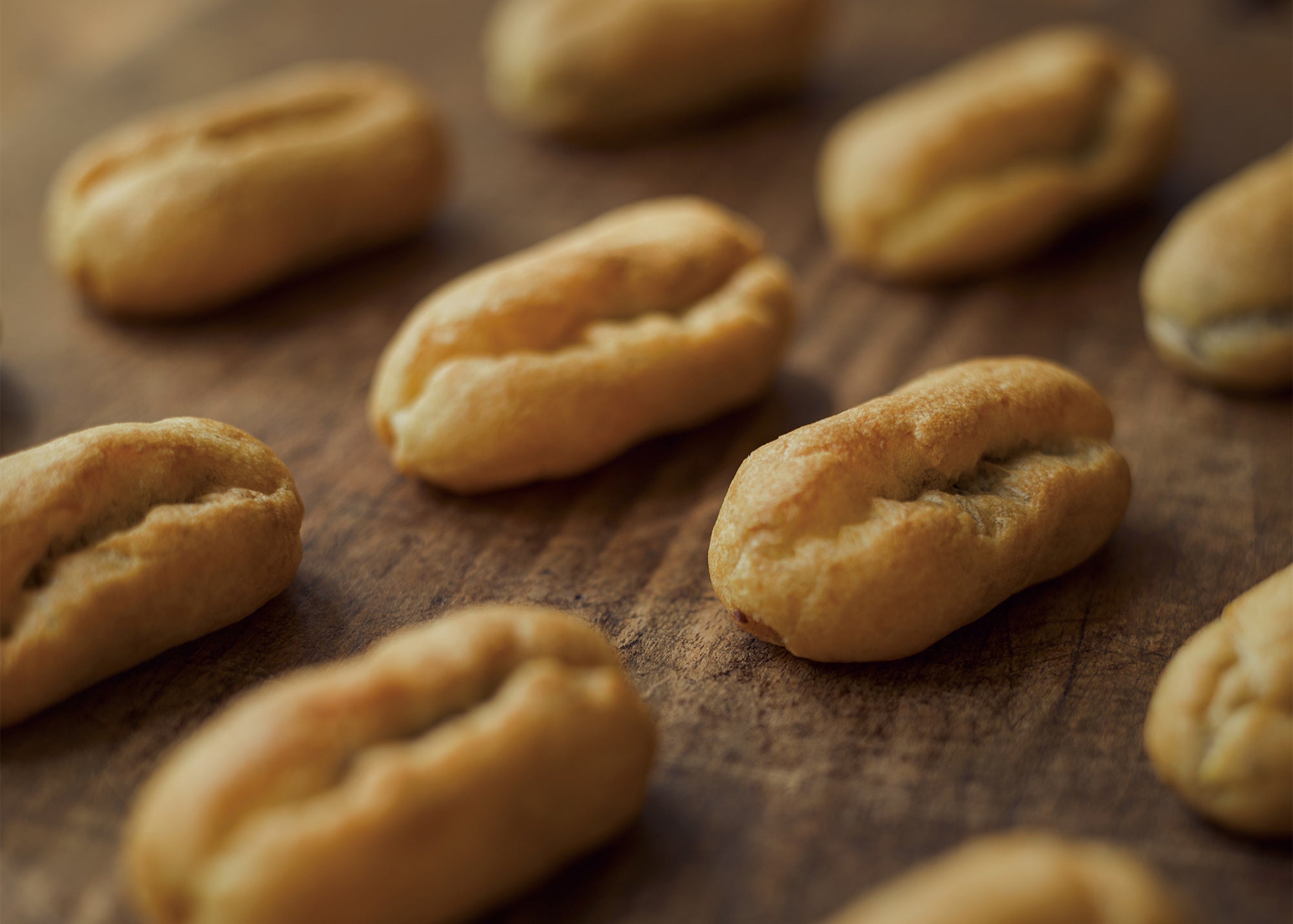 「シューアズキ」は、コロンとかわいいシュー生地に、北海道産小豆で作った自家製の粒あんをたっぷり詰めました。やさしい甘さの小豆を存分に楽しめるプチサイズのお菓子です。