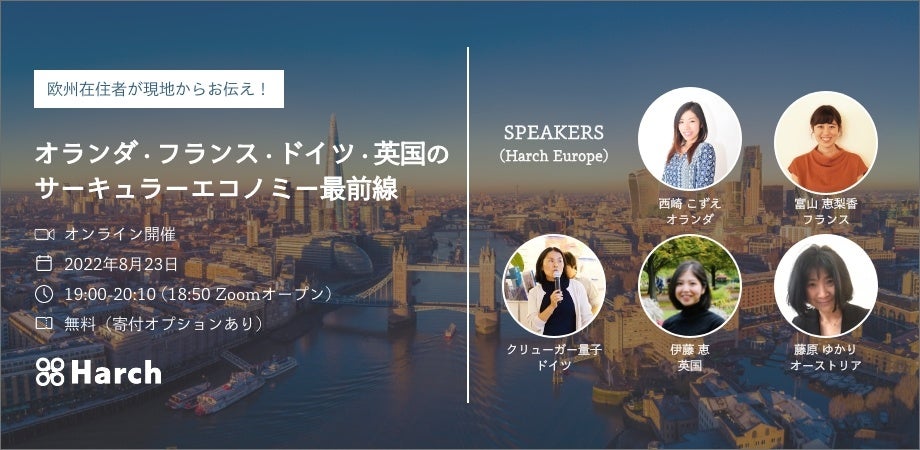 欧州在住メンバーによる事業組織「ハーチ欧州」が、EUおよびオランダ・フランス・ドイツ・英国の先進的なサーキュラーエコノミー政策、自治体・企業・研究機関・NPOのサーキュラーエコノミー実践をご紹介