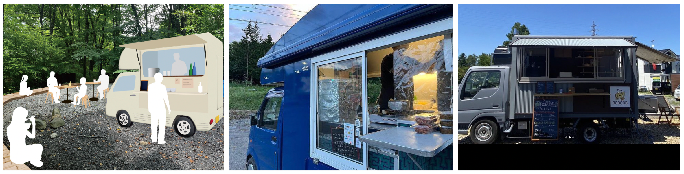 山梨県内で活躍するフードトラックを中心に、アメリカでポピュラーなカジュアルフードであるピザ、アジア料理などニューヨークを感じられるメニューのほか、地元山梨の食材を使ったスイーツなど、ここでしか味わえないメニューを提供するフードトラックを厳選。美術館の鑑賞の前後に気軽にお立ち寄りいただけます。