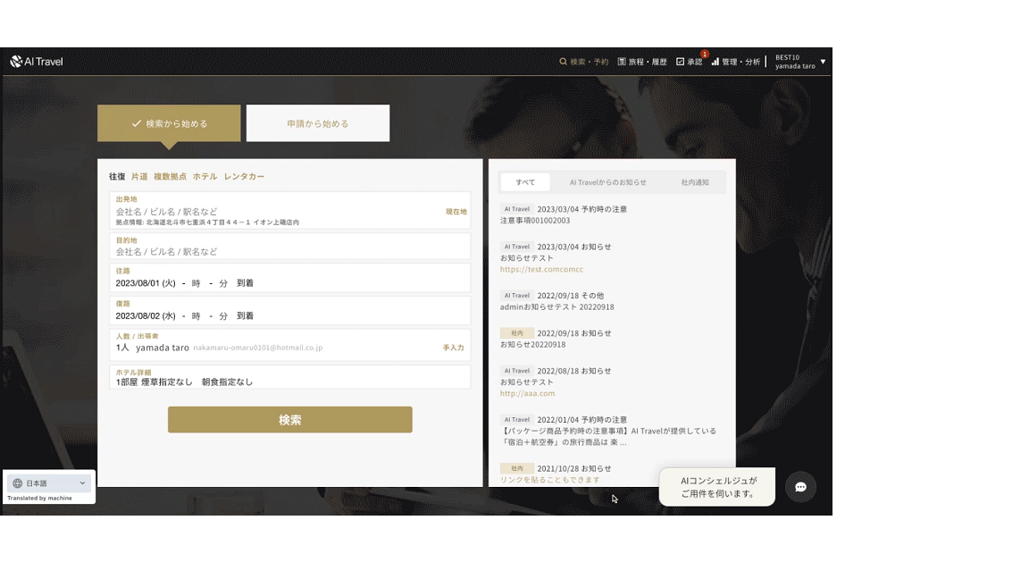 ・出張管理クラウドサービス「AI Travel」:https://aitravel.cloud/