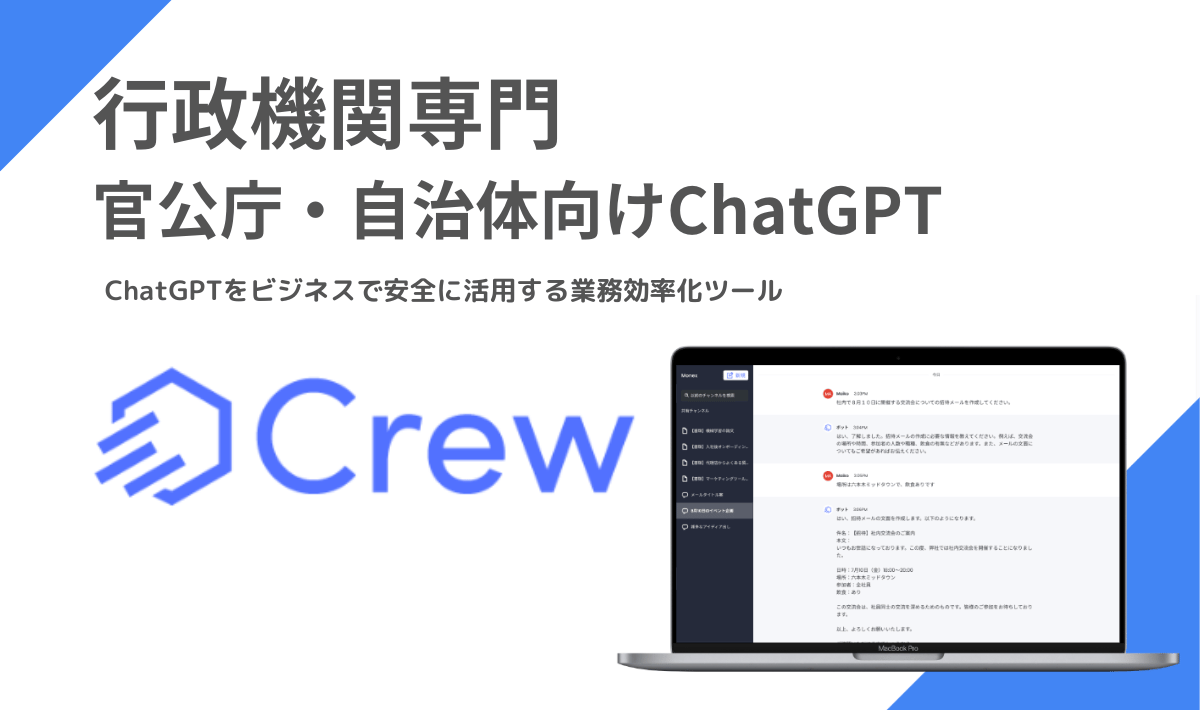 行政機関内でChatGPTを安全に活用する業務効率化ツール 行政機関専門ChatGPT「Crew」リリース