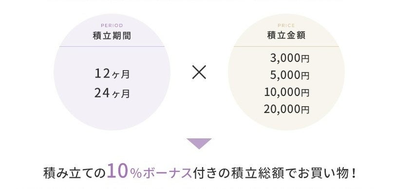 『振袖積み立て』の他に、2つの積み立て期間と4つの積み立て金額からお選びいただき、お好きなコースでお申し込みいただけます。満期を迎えていなくても、お好きなタイミングで積み立ての10%ボーナス付きの積み立て総額でお買い物できます。
