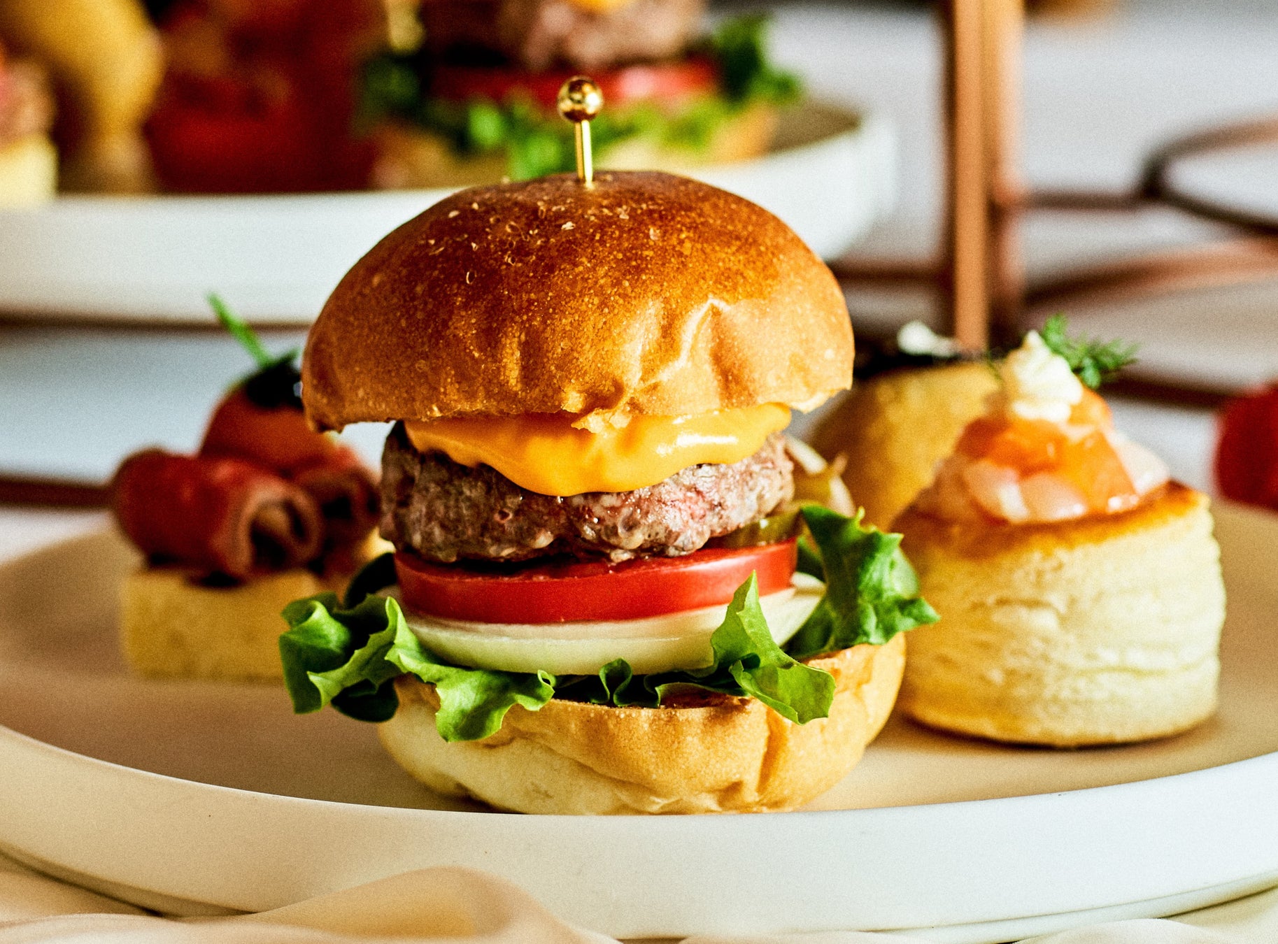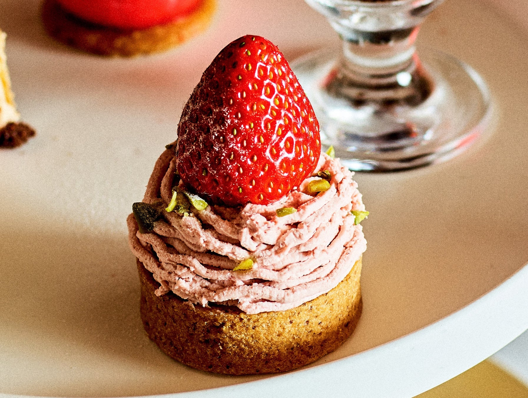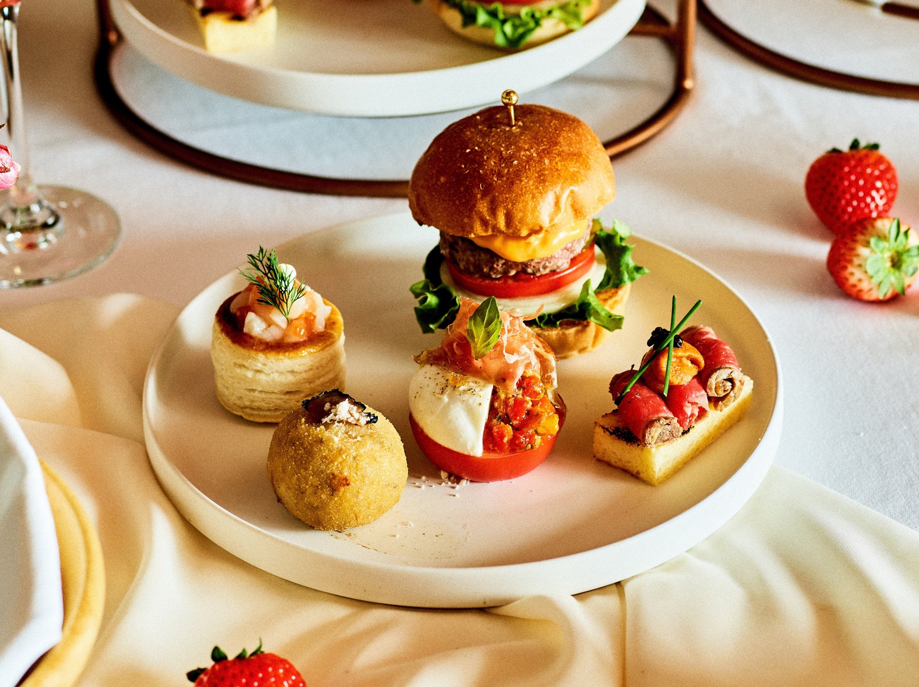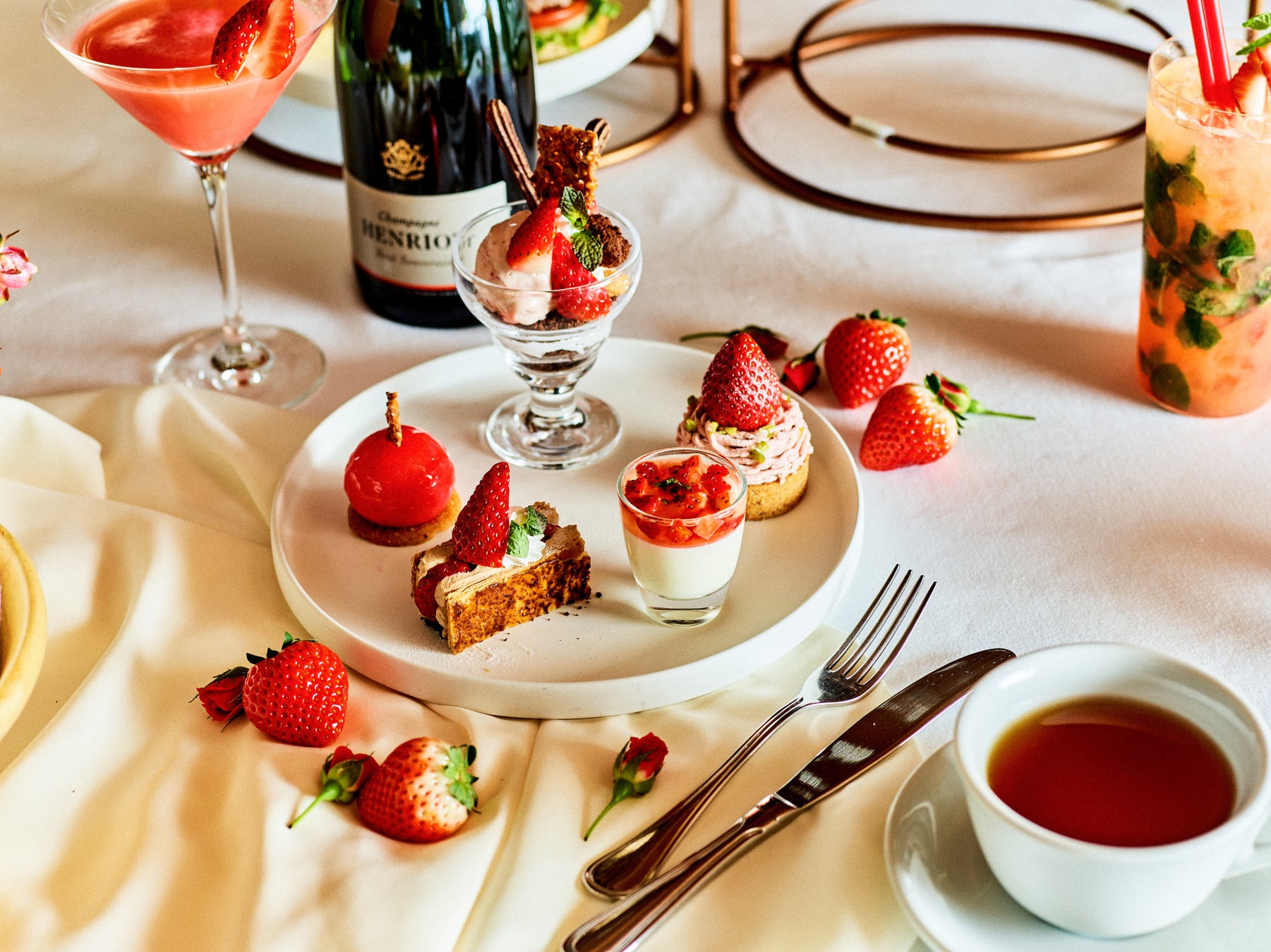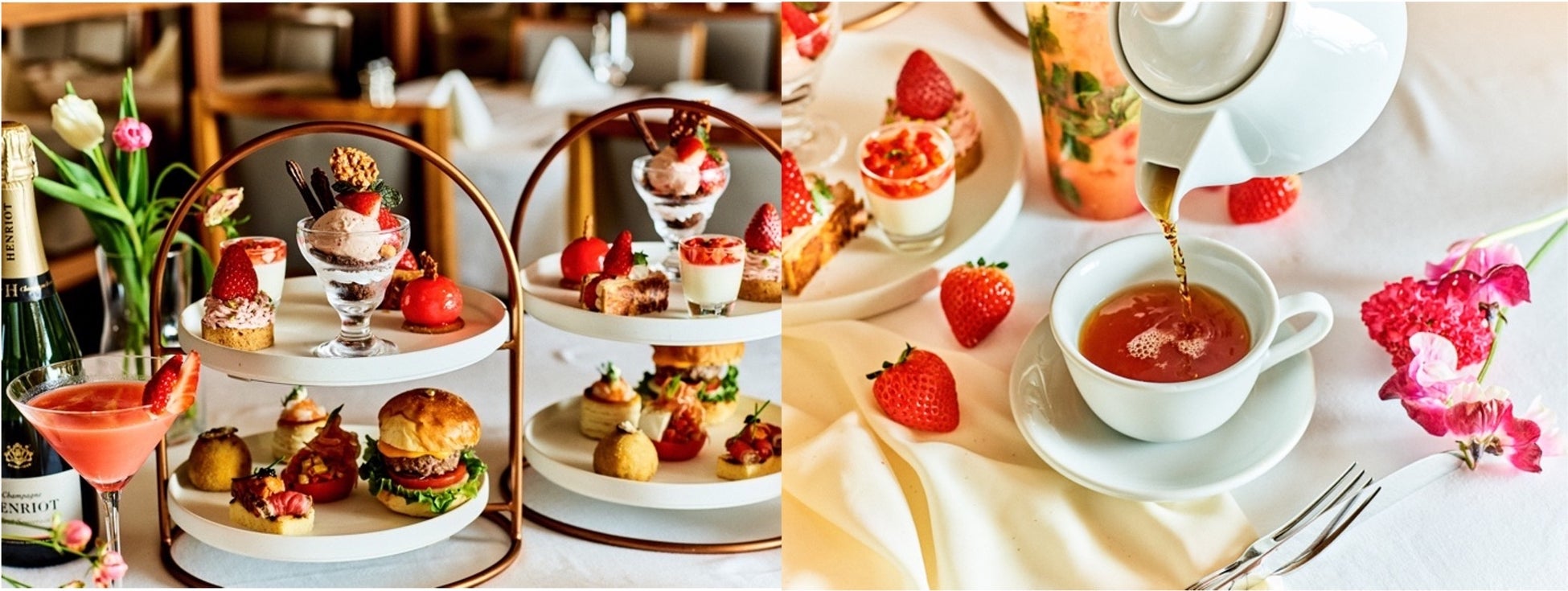 いちごと赤ワインを組み合わせたいちごのムースやいちごを丸々一粒を使ったモンブラン、いちごとチョコレートを組み合わせたミニサイズのパフェなど、心踊るいちごのスイーツ5種をお届けします。セイボリーでは、これまでも人気の高い、イル・ルピーノ・プライムが誇るUSDAプライムビーフ※のチーズバーガーやオープンサンド、サマートリュフのアランチーニなど、5種類ご用意しました。ドリンクには、ドイツ生まれの最高級品質の「ロンネフェルト」の紅茶やコーヒー各種からお選びいただけます。またフレッシュストロベリーマティーニやノンアルコールモヒートなどのドリンクも登場し、飲み物までいちごづくしなひと時をお楽しみいただけます。