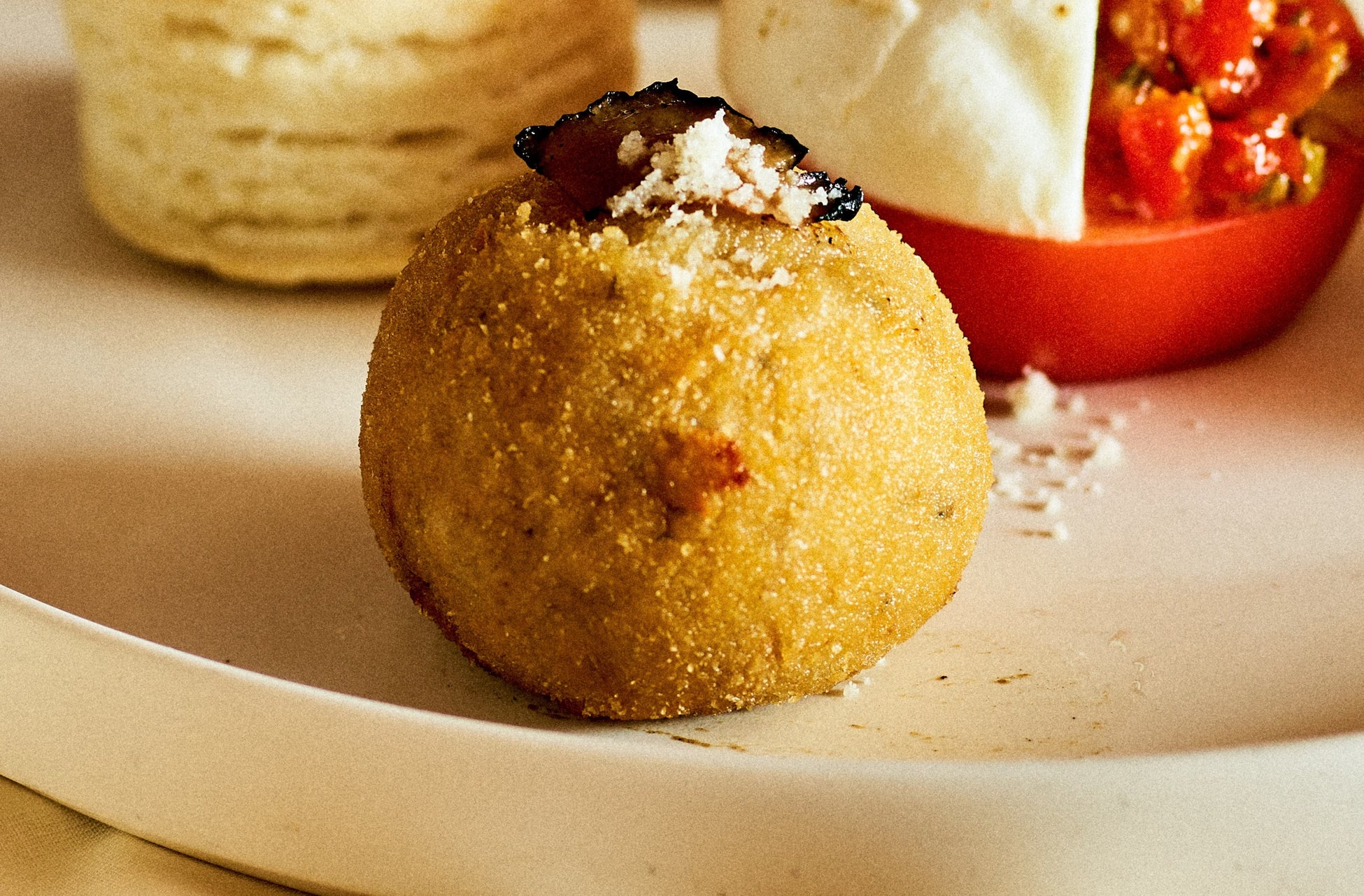 サマートリュフをふんだんに使用した濃厚なチーズリゾットを、外はカリッと、中はとろける南イタリア名物のライスコロッケ“アランチーニ”に仕上げました。香り高いトリュフが一口ごとに広がります。