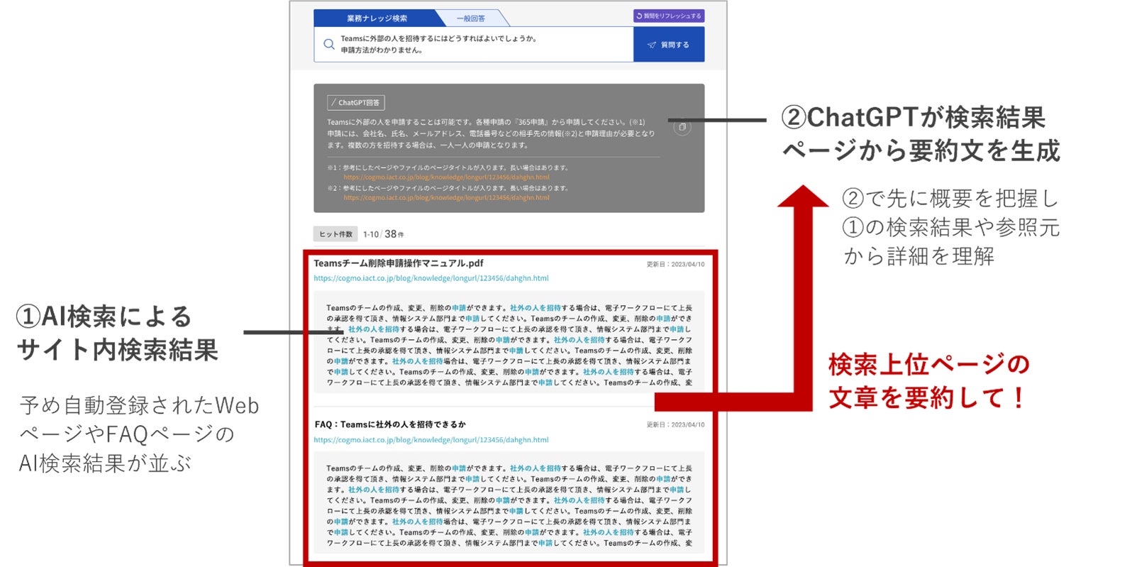■Cogmo Searchで高精度のサイト内検索、ChatGPTで要約文を表示