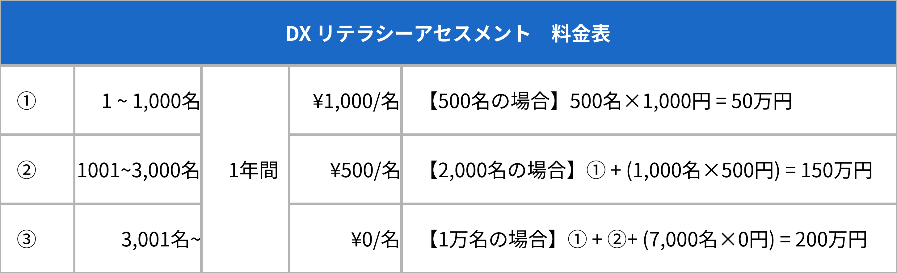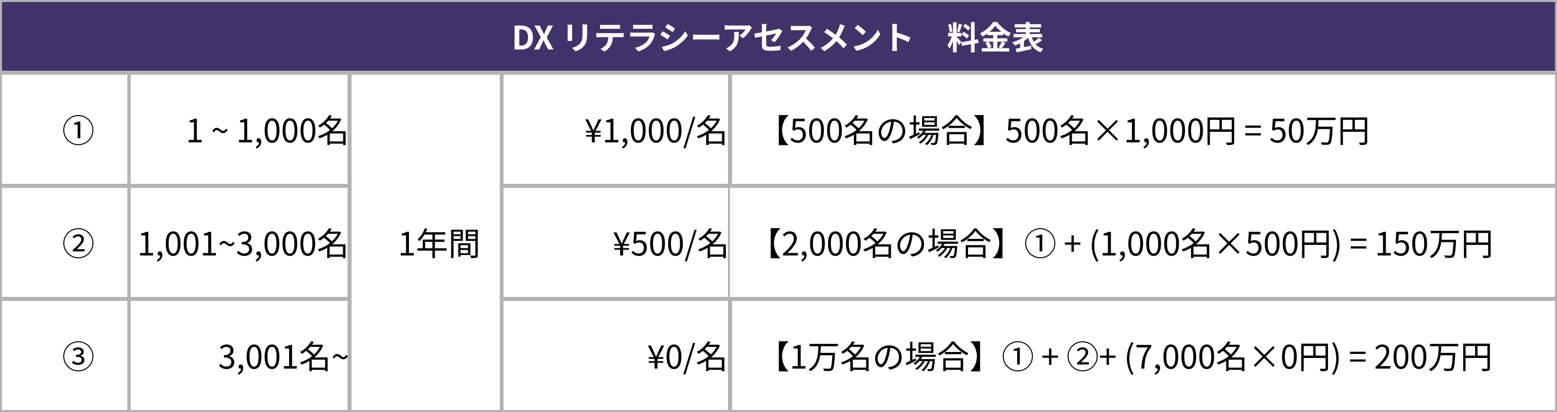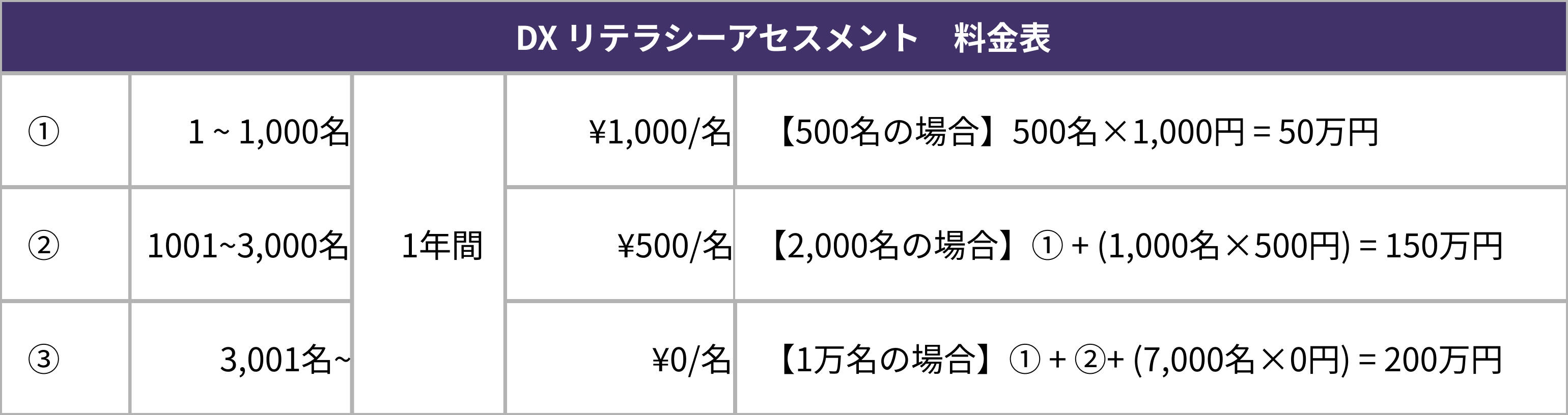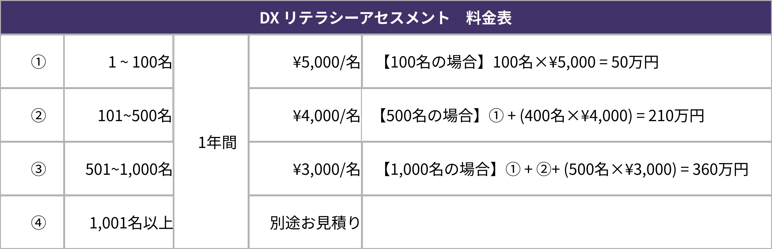 全社員の DX リテラシーレベルを可視化し、全社的な DX 推進人材育成を加速させます。