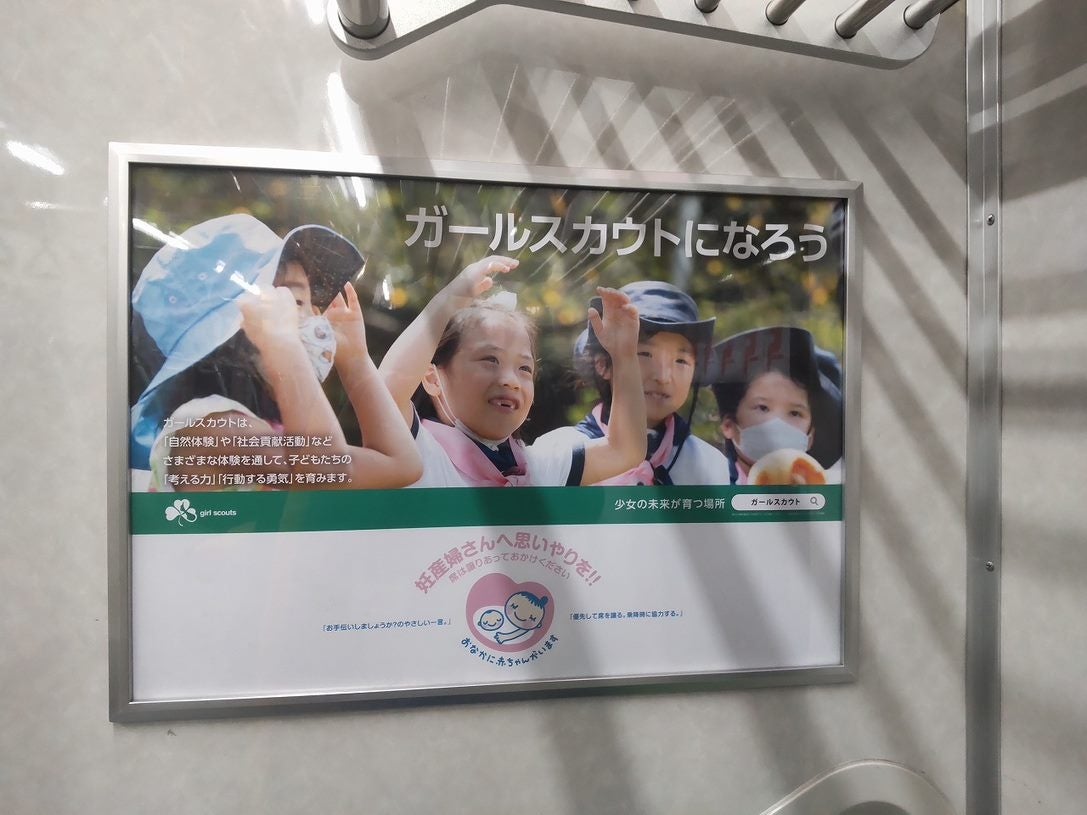 公益社団法人ガールスカウト日本連盟(会長:和田照子、以下「ガールスカウト日本連盟」)は、都営地下鉄新宿線内にて、マタニティマークとのタイアップ広告の掲示を開始しました。