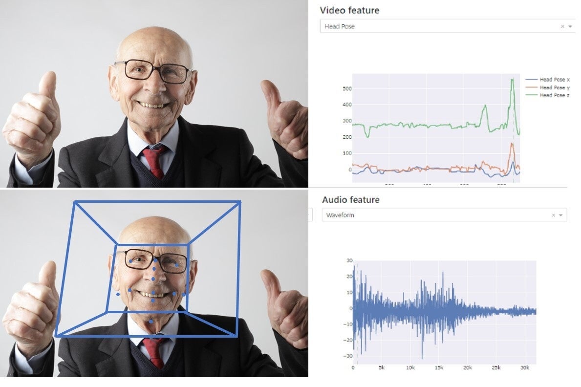 図:オンライン対話からの音声、対話情報の抽出による認知機能の推定(図はイメージです)