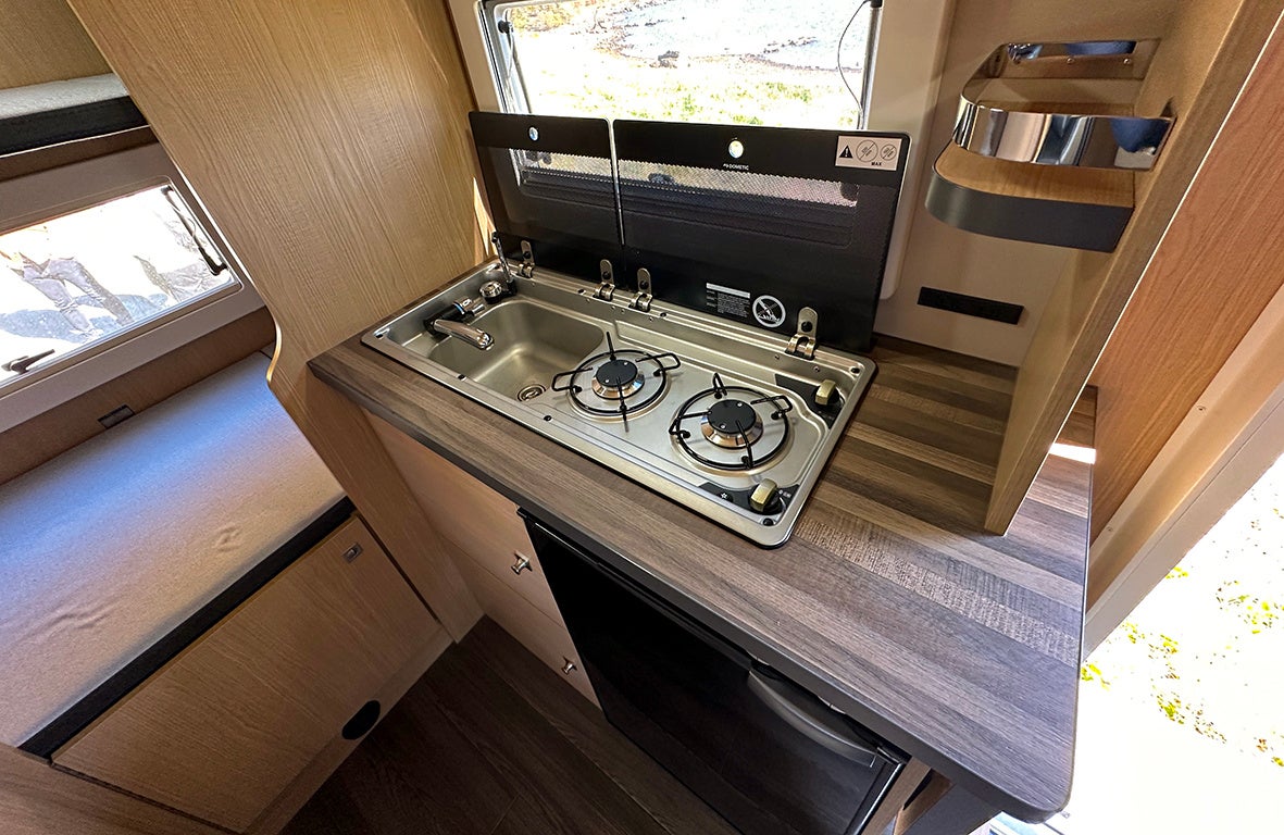 ・5×2mのコンパクトボディのため、取り回しに優れキャンピングカー初心者でも運転しやすい。