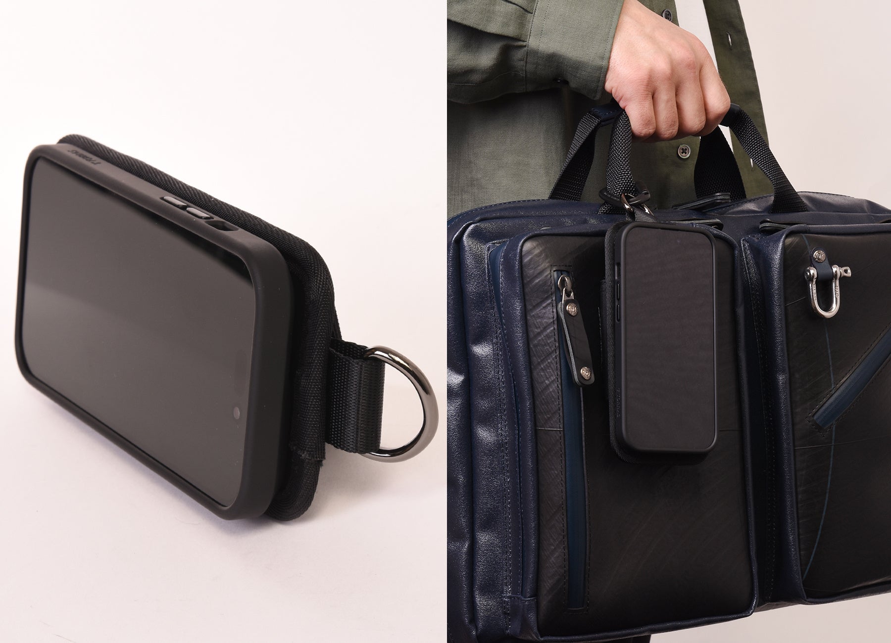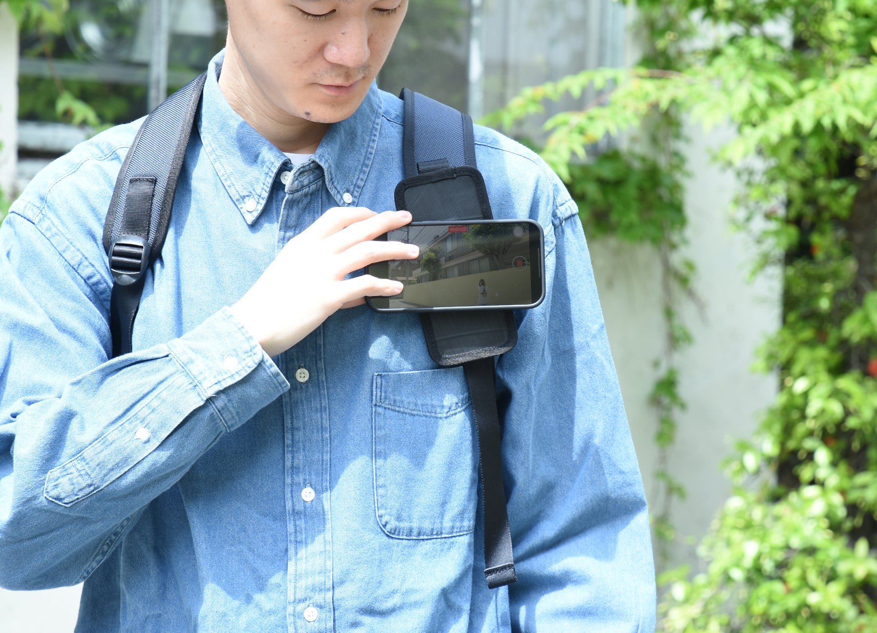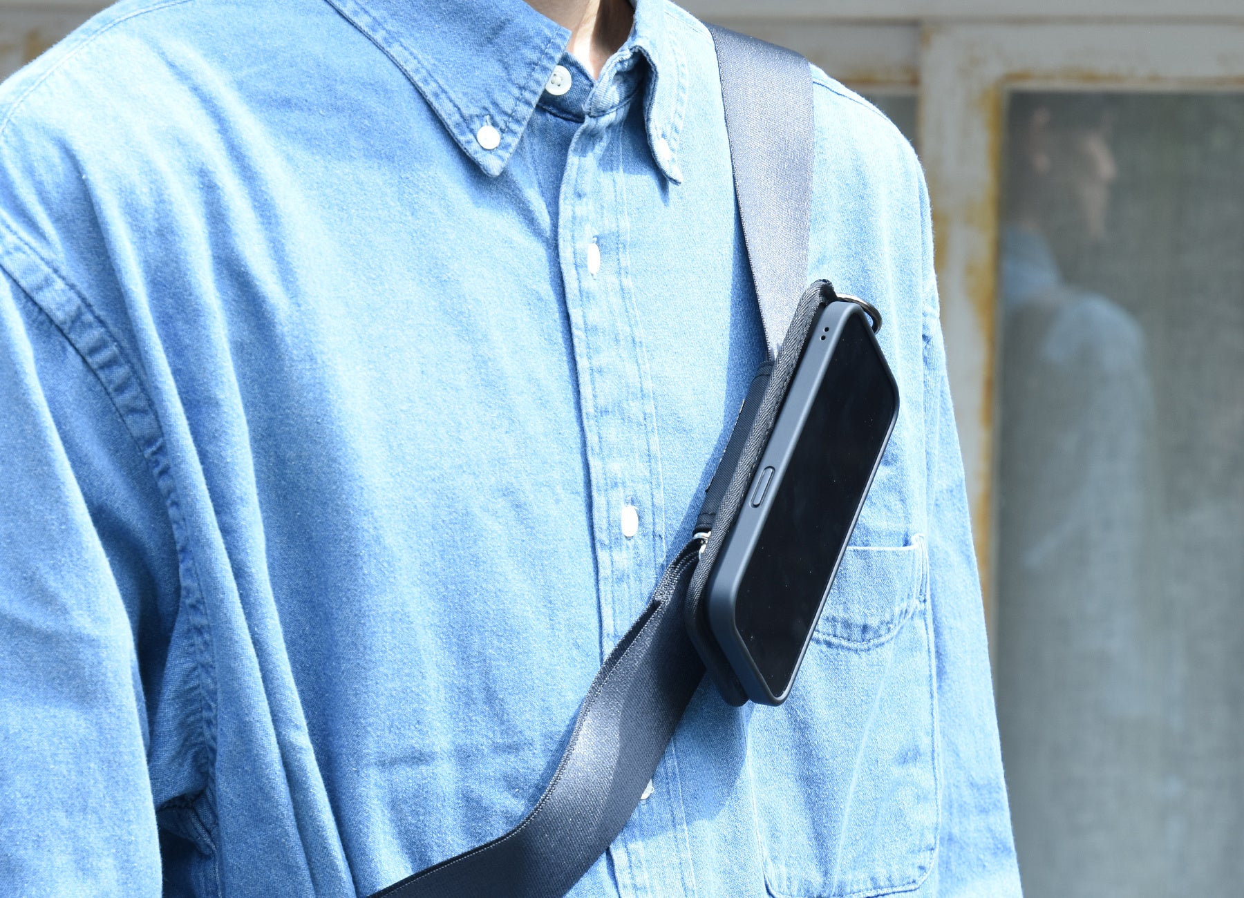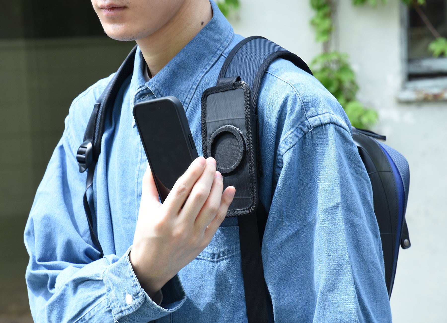 本製品は、InsPeak※1からの提案により約1年掛けて試行錯誤を重ね実現したありそうでなかったコラボ製品です。お手持ちのスマートフォンのMagSafeが製品の前面に採用されたパワフルな磁力によりに連結。背面のベルトホルダーを使ってリュックやショルダーバッグに装着することにより瞬時に取付け取外しがワンアクションで行う事が出来る為、従来のようなバッグやズボンからスマートフォンを取出す煩わしさが解消できます。
