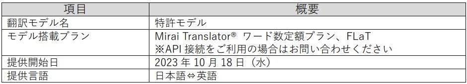 ■Mirai Translator🄬特許モデル サービス提供についての詳細