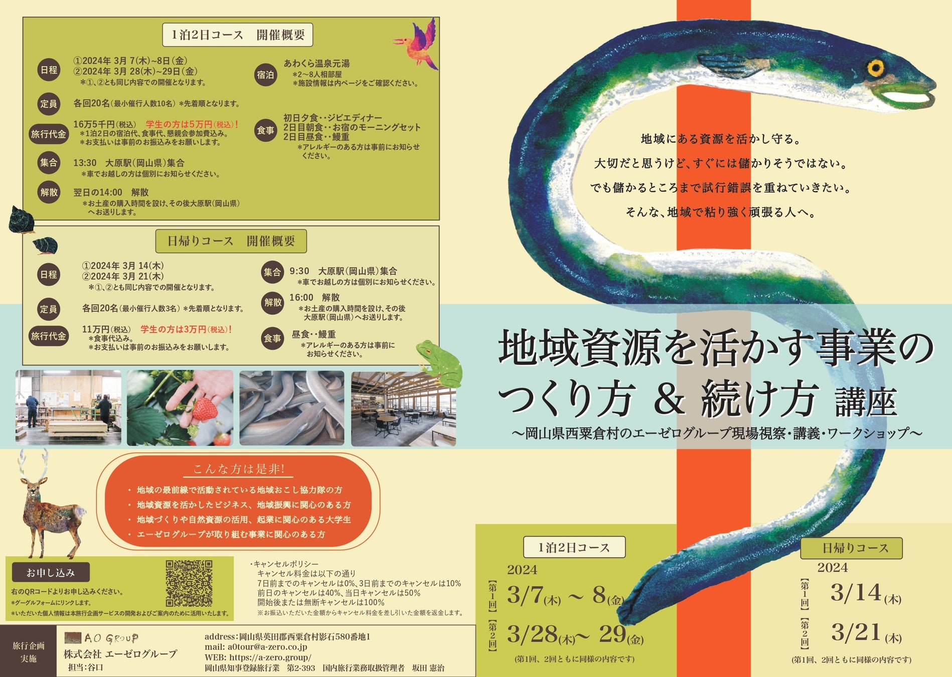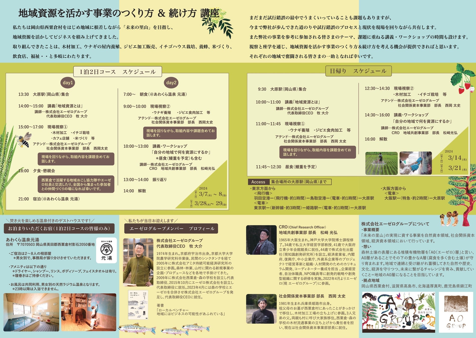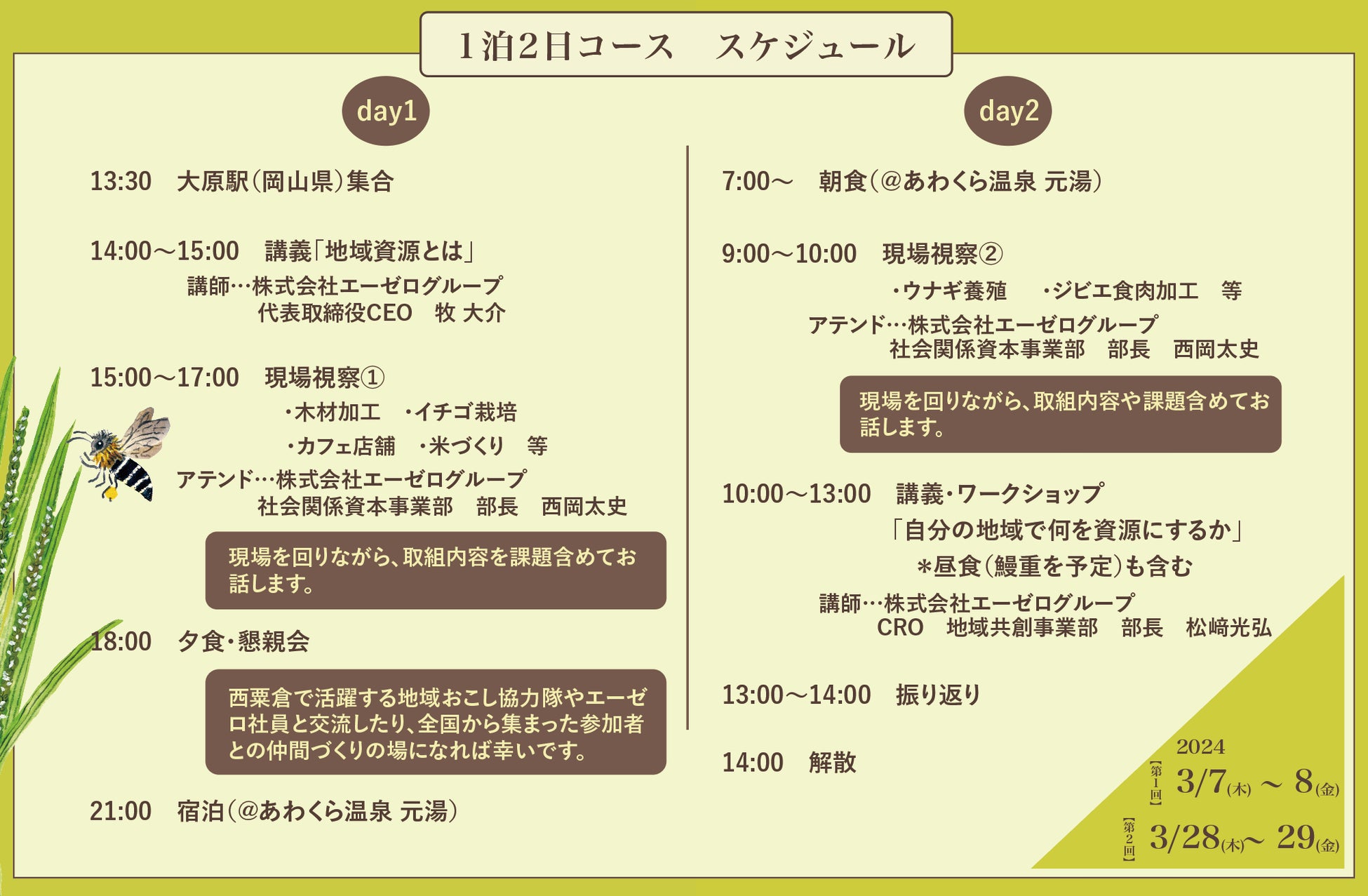 地域で奮闘する方々に向けて【1泊2日コース(2024/3/7~8、3/28~29)と日帰りコース(2024/3/14、3/21)】を企画し参加者募集の開始しました。