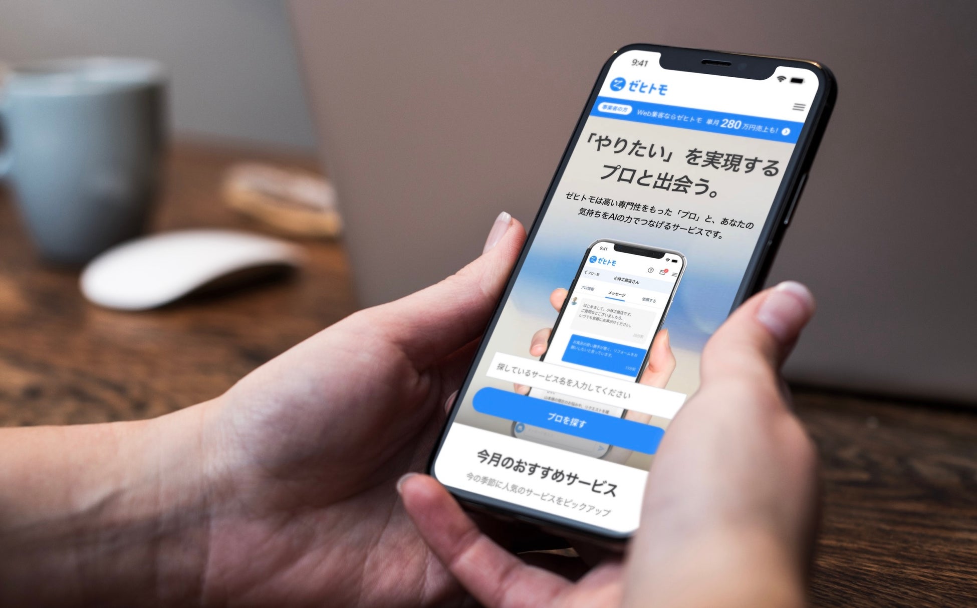 ゼヒトモは、仕事をお願いしたい依頼者と、カメラマン、ヨガ講師、リフォームや工事事業者などさまざまな「プロ」をつなぐプラットフォームです。プロの仕事の幅や可能性を広げ、日本のローカルサービス、そして働き方を変えていきます。仕事をお願いしたい依頼者が条件を指定すると、AIがオーダーに合った事業者とマッチング。ゼヒトモのプラットフォーム上でのチャットだけでなく、事業者と直接電話やEメールなどを使って連絡を取ることもできます。