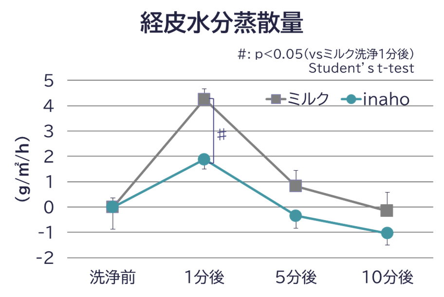 inahoは洗浄直後の蒸散量の上昇を抑制。