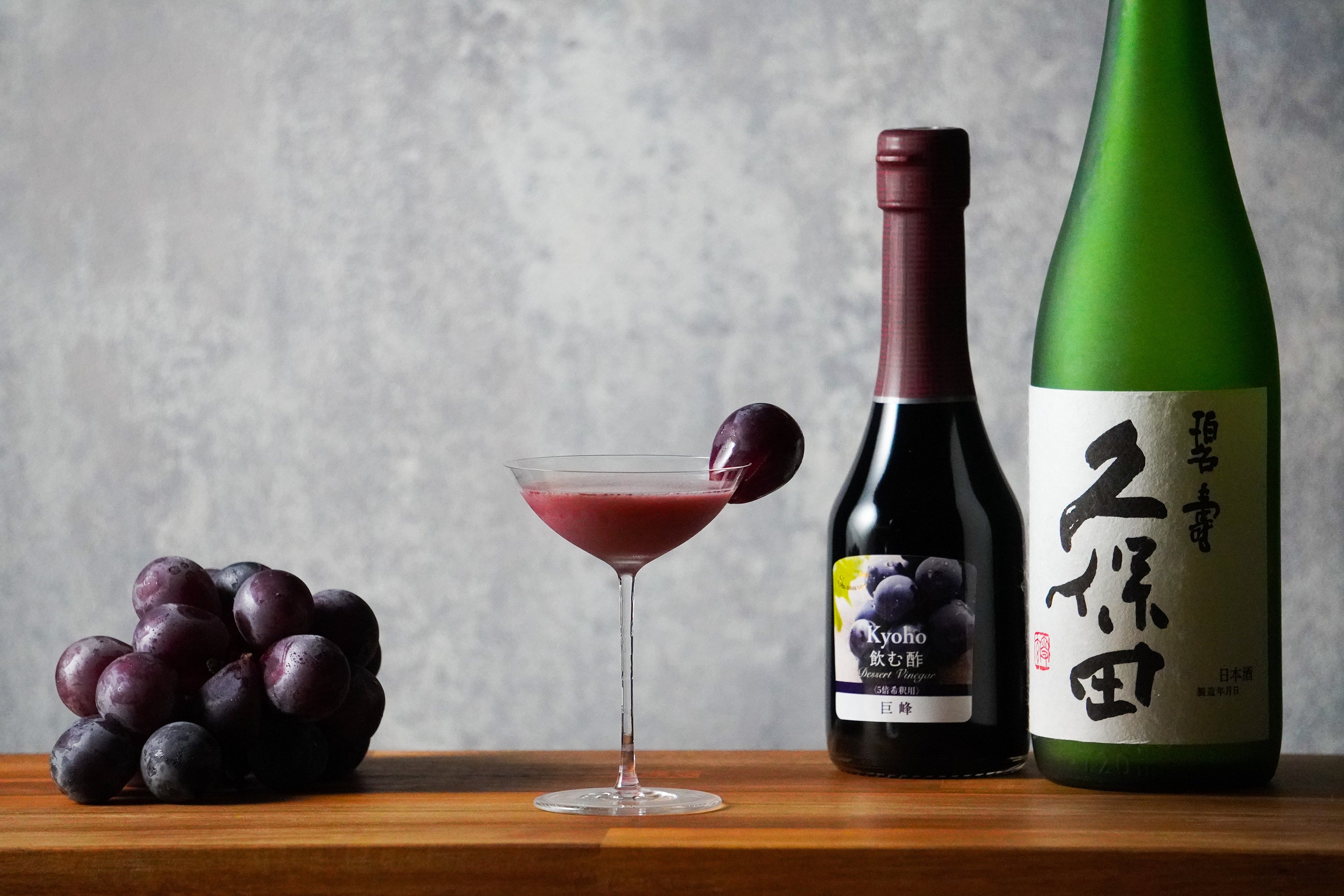 「飲む酢・デザートビネガー・巨峰」に凝縮された瑞々しくも深い甘味と酸味を、ベースの『久保田 碧寿』がシャープさを残しながら、相性の良いミルクと溶け合い包み込みます。飲み口まろやかで上品な味わいのカクテルです。