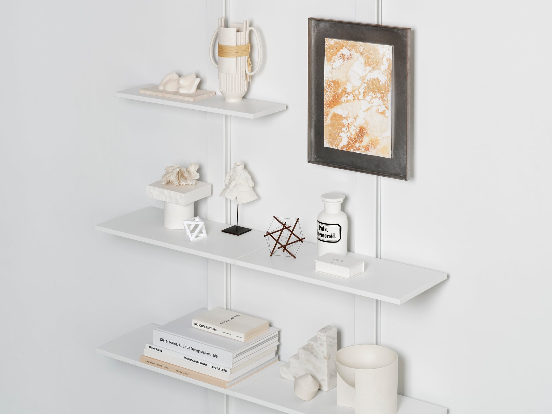 支柱に、棚やオプションパーツを組み合わせて、自分らしいシェルフを組み立てるシステムです。