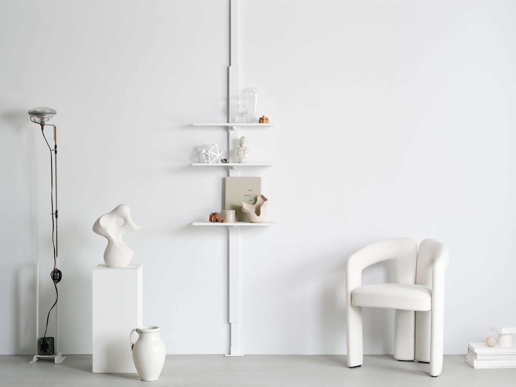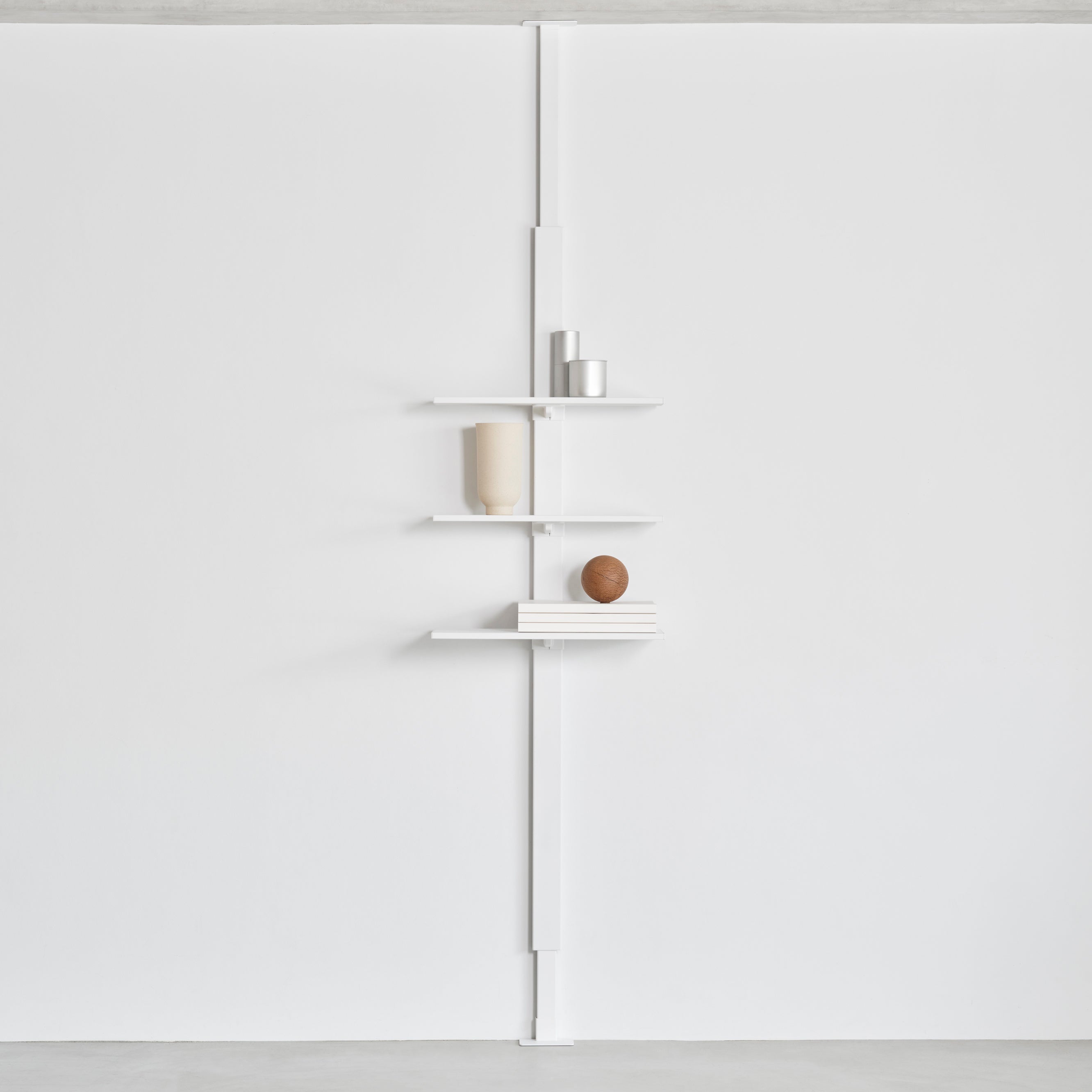 AIR SHELF(エアシェルフ)は、壁を傷つけず好きな高さに美しい棚を設置できるシェルフシステムです。