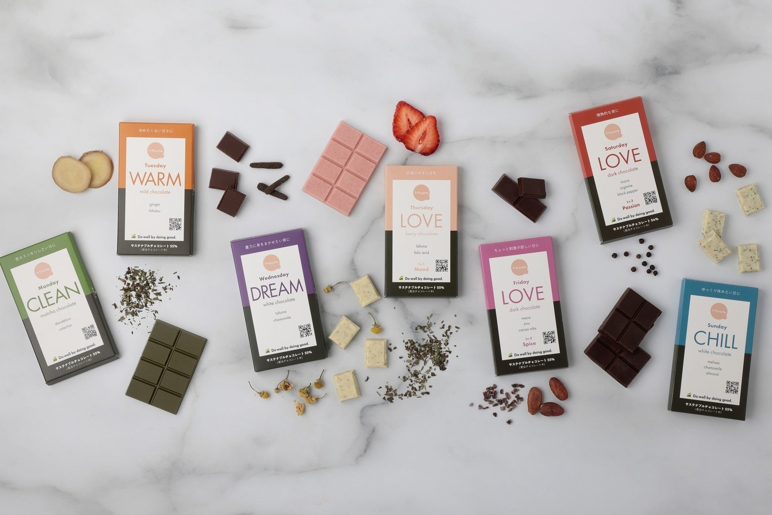 パートナーとの1週間を7つの物語に見立て、それぞれのテーマに合わせた栄養素やハーブをミックス。環境にも身体にも嬉しい7種のチョコレートバーです。喜びのときも悲しみのときも、大切な人とのコミュニケーションツールとして2人の繋がりをそっとサポートします。選べる3枚・7枚にはギフトボックスをご用意。