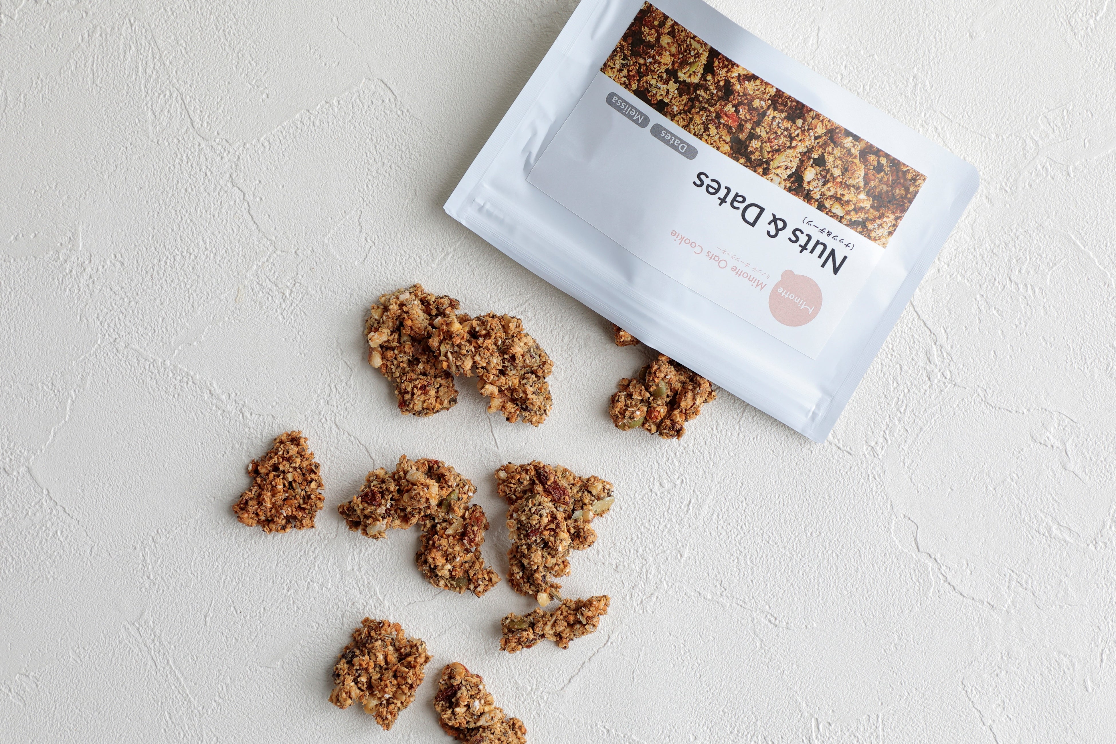 メリッサの茶葉、ナッツ、ドライフルーツがゴロゴロ入った[Nuts&Dates]。ザクザクの食感で食べ応えがあり、おなかも心も満たされます。