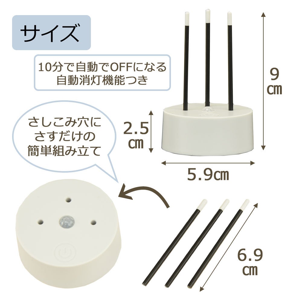 ・電池式(電気線香:単4電池×2本、電気ローソク:ボタン電池(R2032)×1個)