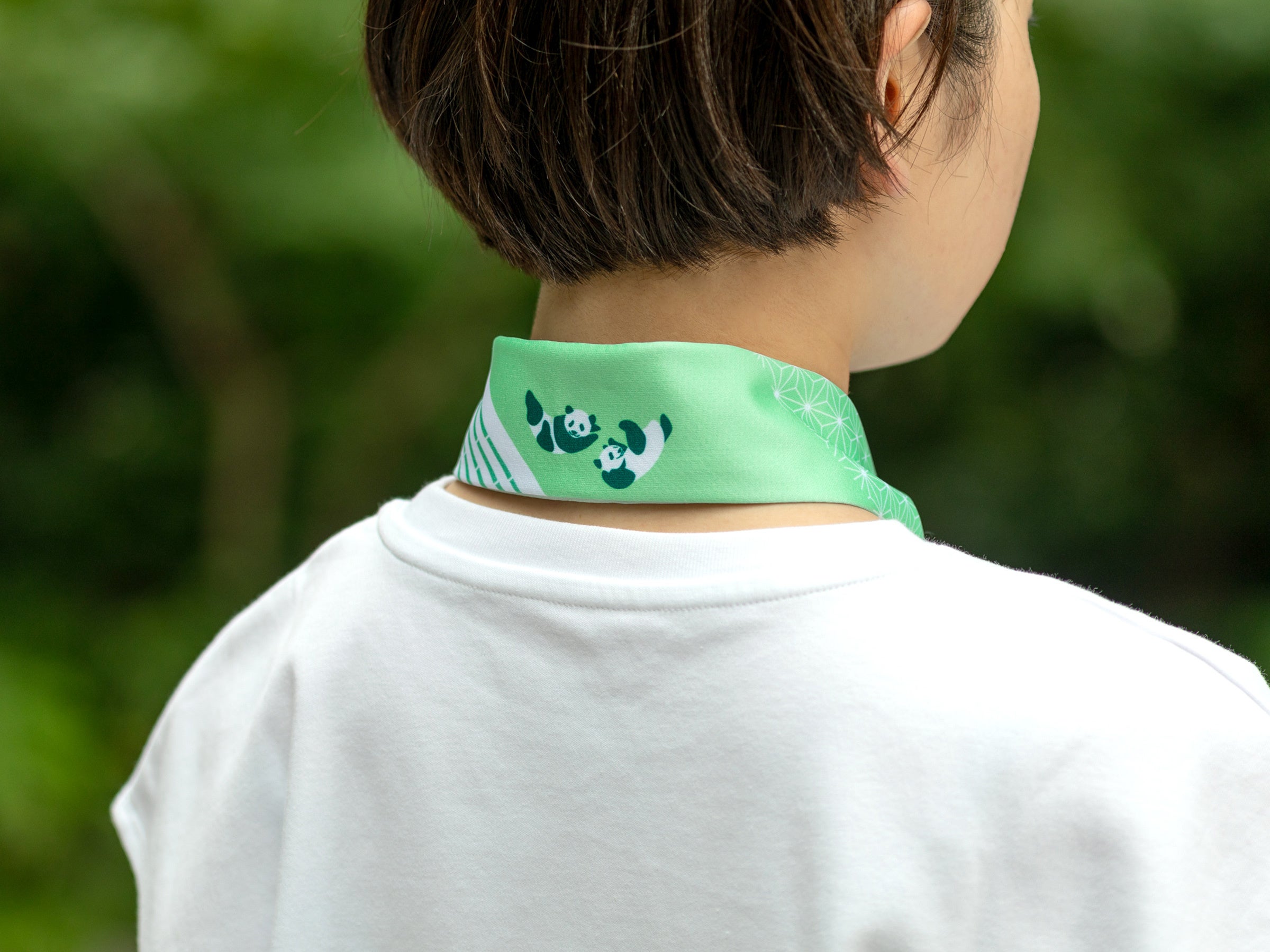 『上野パンダファミリー ひんやりスカーフ(グリーン)』 税込1,980円