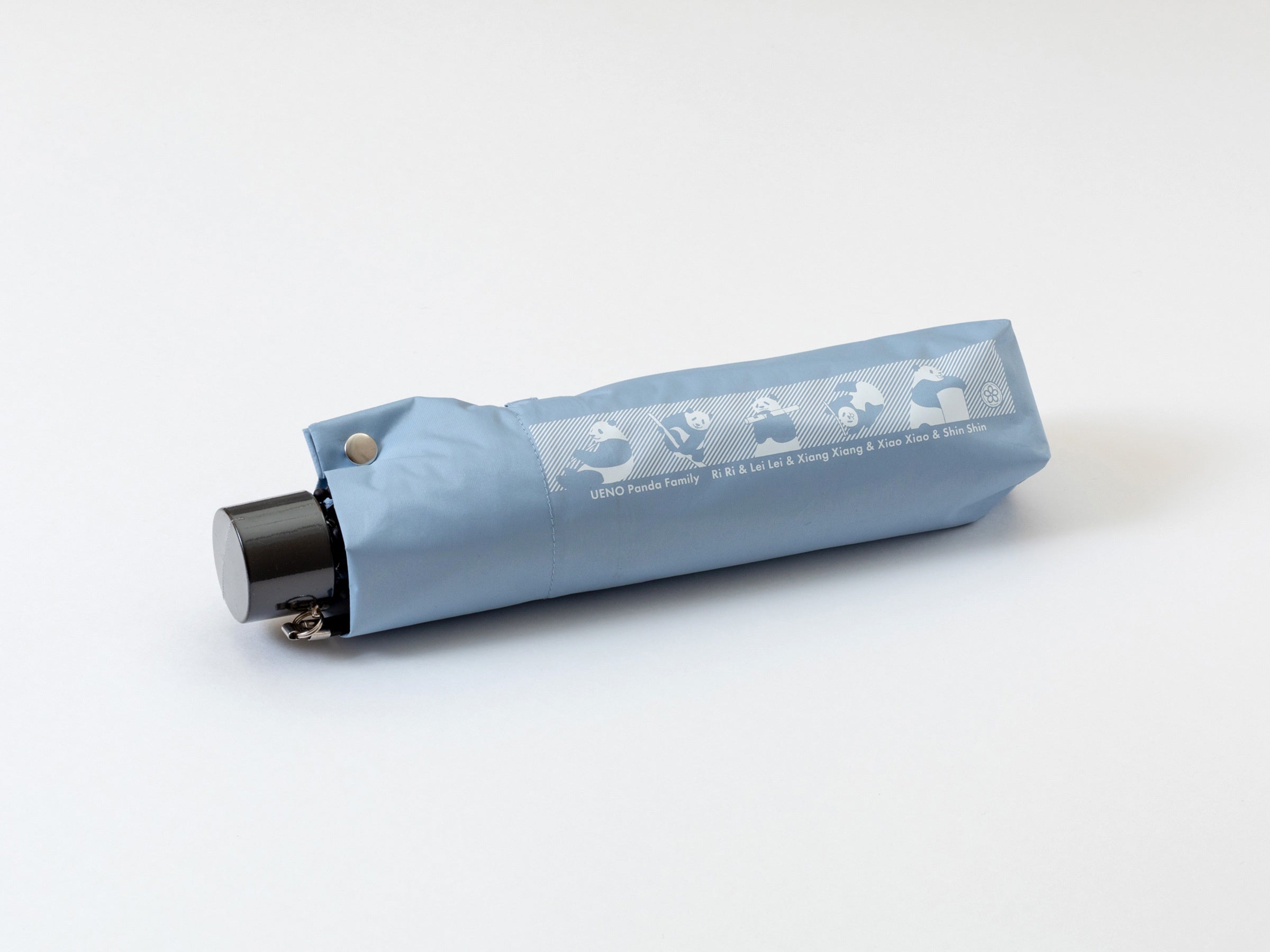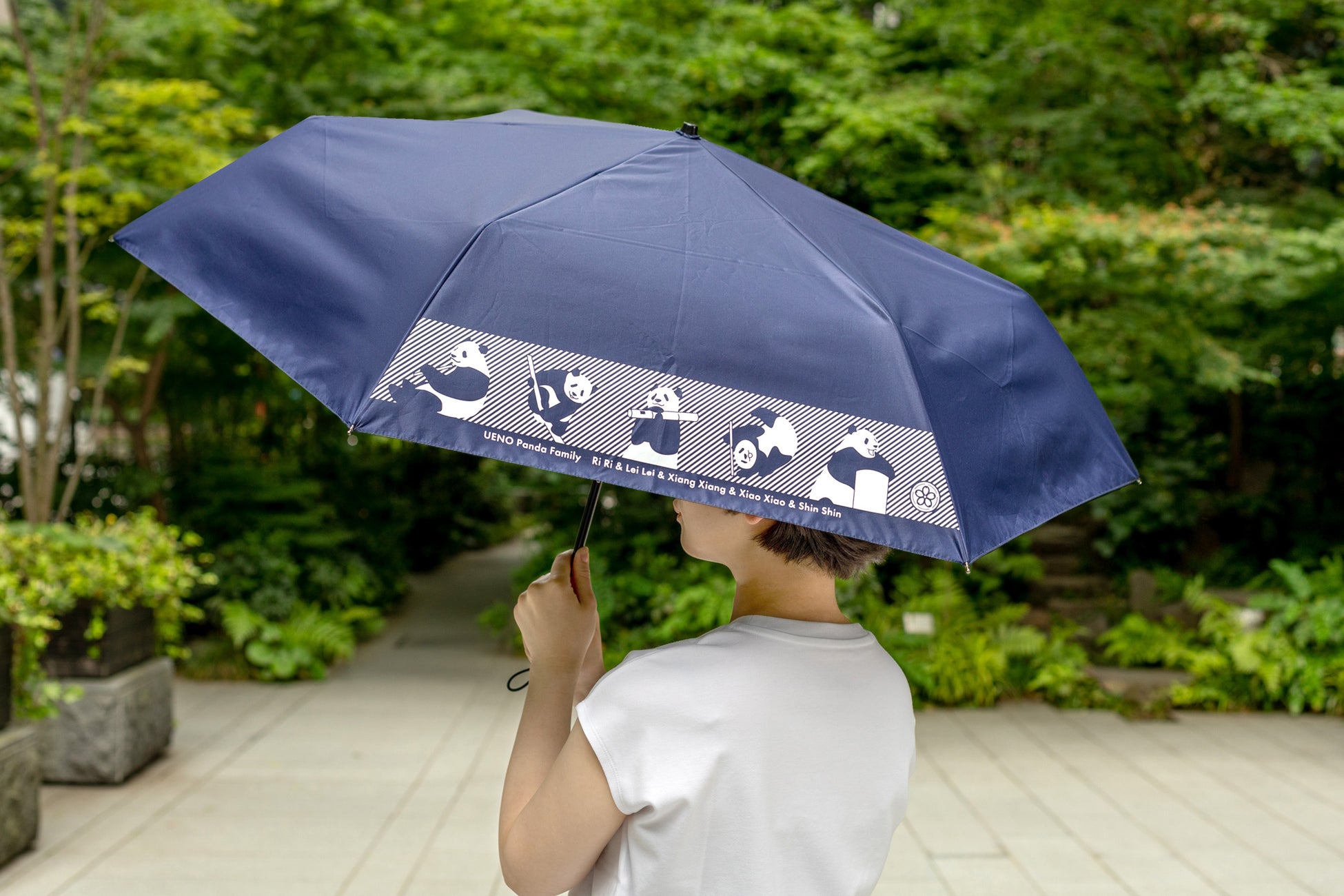 恩賜上野動物園の上野パンダファミリーをモチーフにしたワンポイントデザインが愛らしい晴雨兼用の高機能な折りたたみ傘が登場! 遮光率99.99%以上・UVカット99.99%以上の生地(HEAT BLOCK)を使用しています。安心感のある56cmサイズで、涼しさを感じるネイビーとブルーグレーの2色ご用意しました。雨の日も晴れの日も一緒にお出かけしたくなる、頼れる傘です♪
