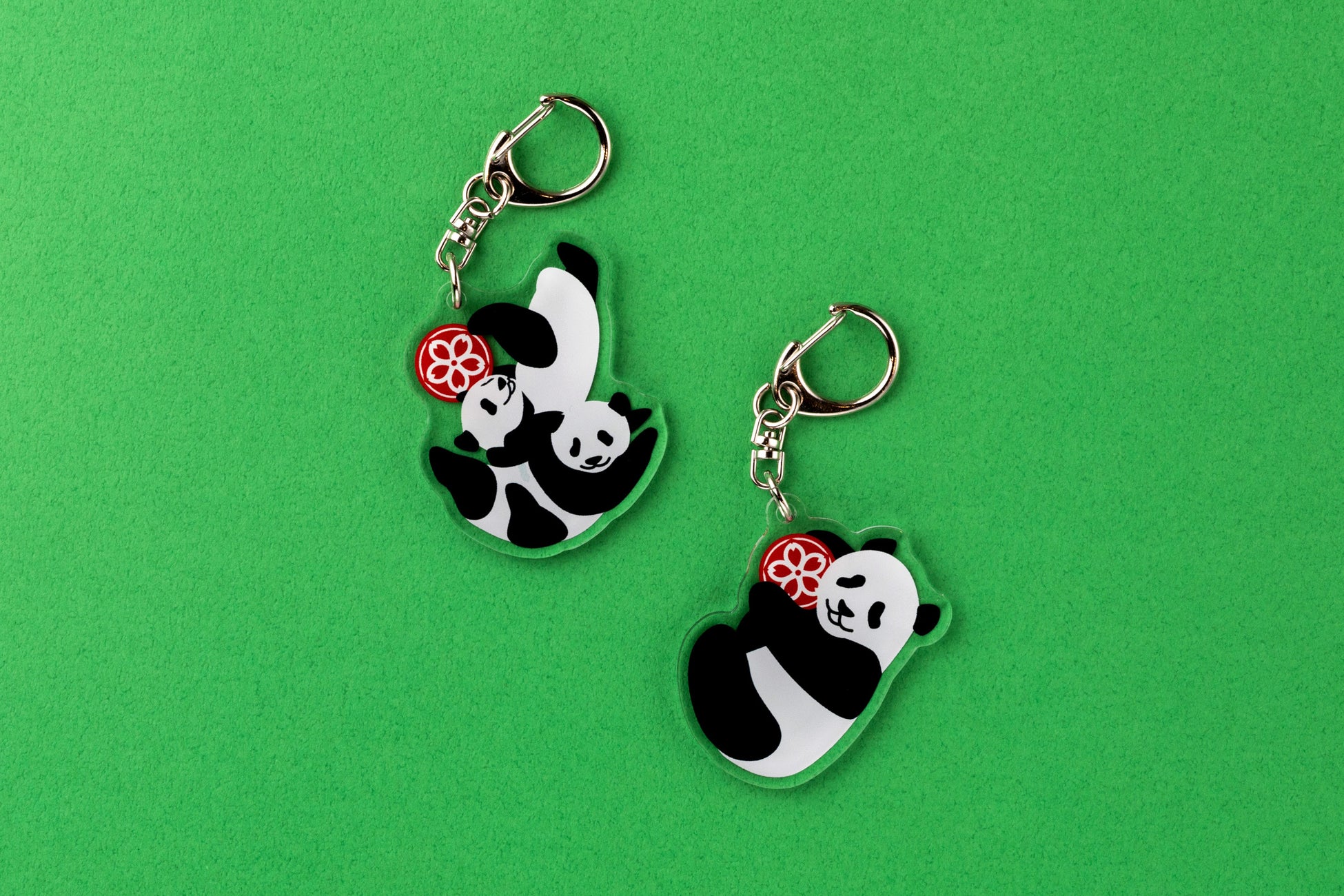 恩賜上野動物園のパンダファミリーをモチーフにした、誕生日記念のアクリルキーホルダー。2歳になる元気いっぱいの『シャオシャオ&レイレイ』と、中国で6歳を迎える『シャンシャン』の2個のセット。転がるポーズが愛らしく、思わず笑顔になります。 サイズ:40×50mm内(アクリル部分)