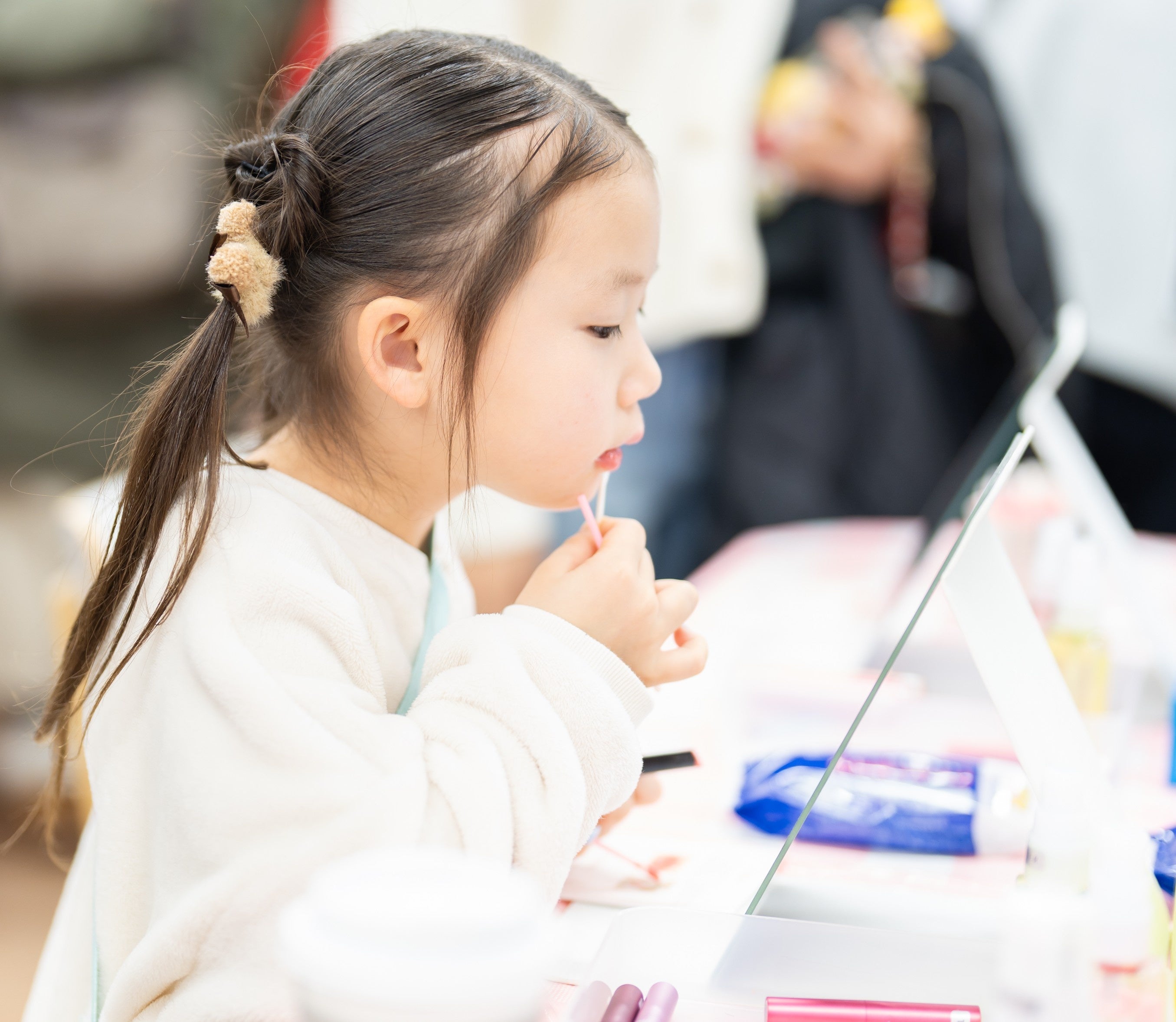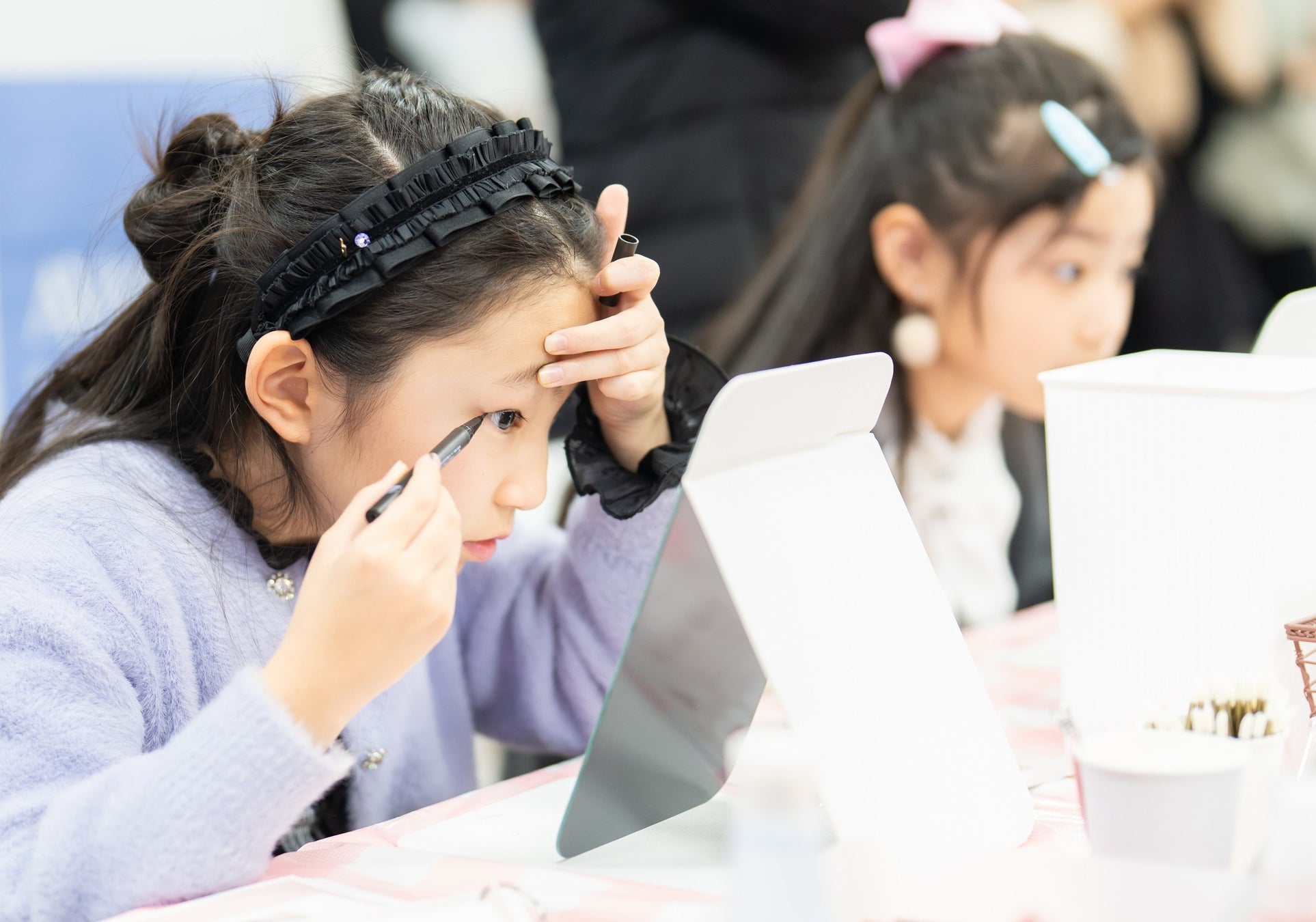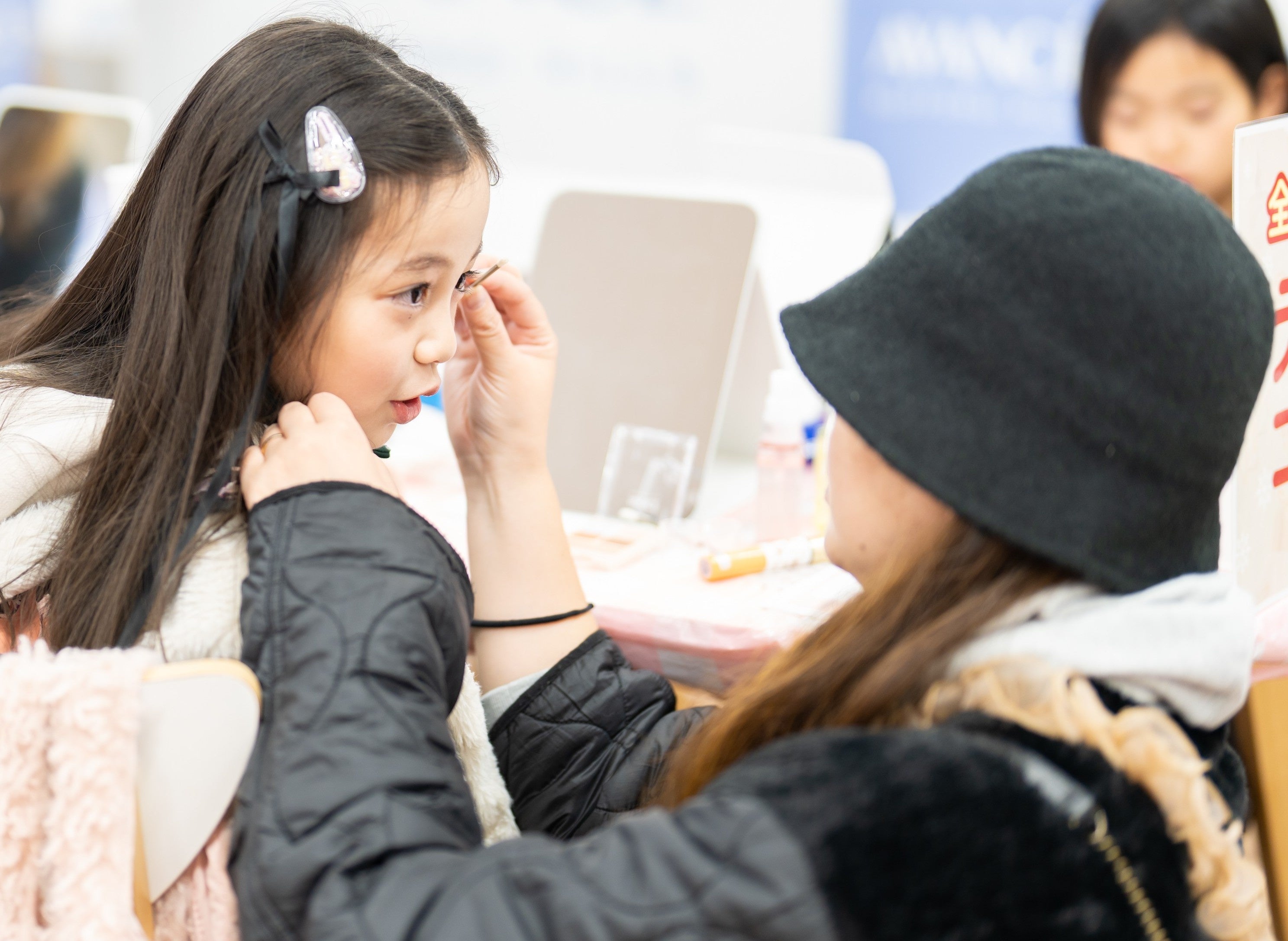 思い思いにテスター商品を試すお子さまと、それを温かく見守り、ときにサポートする保護者たちの姿はファーストメイクイベントならではの印象的な一幕です。