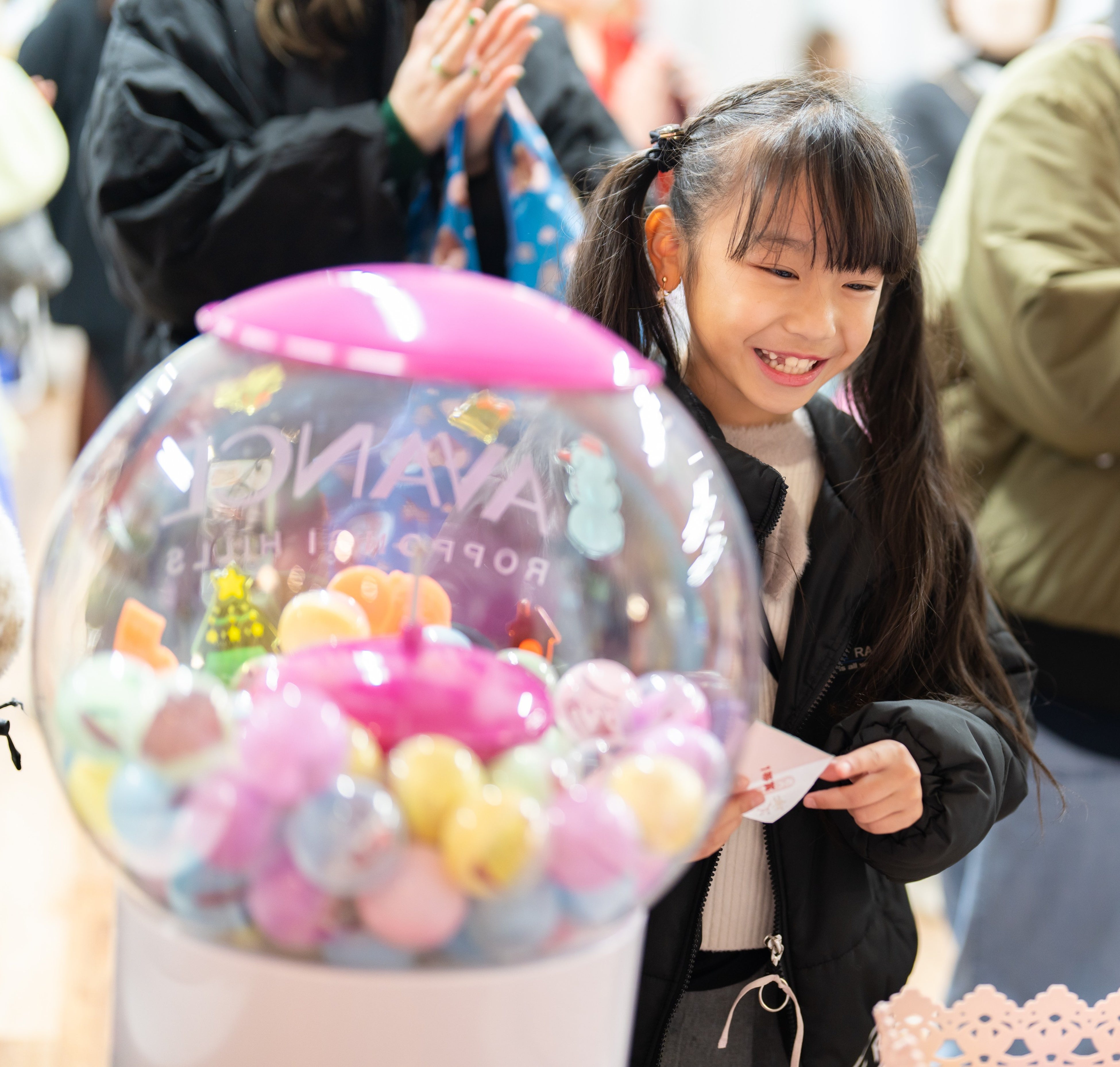 スタンプラリーの4つの体験をすべてクリアすると、いよいよゴールへ。参加者はコスメがあたる特製ガチャガチャに挑戦でき、人気コスメのサンプルやイベント限定の特典が当たる仕掛けに、子どもたちの期待感も最高潮に。