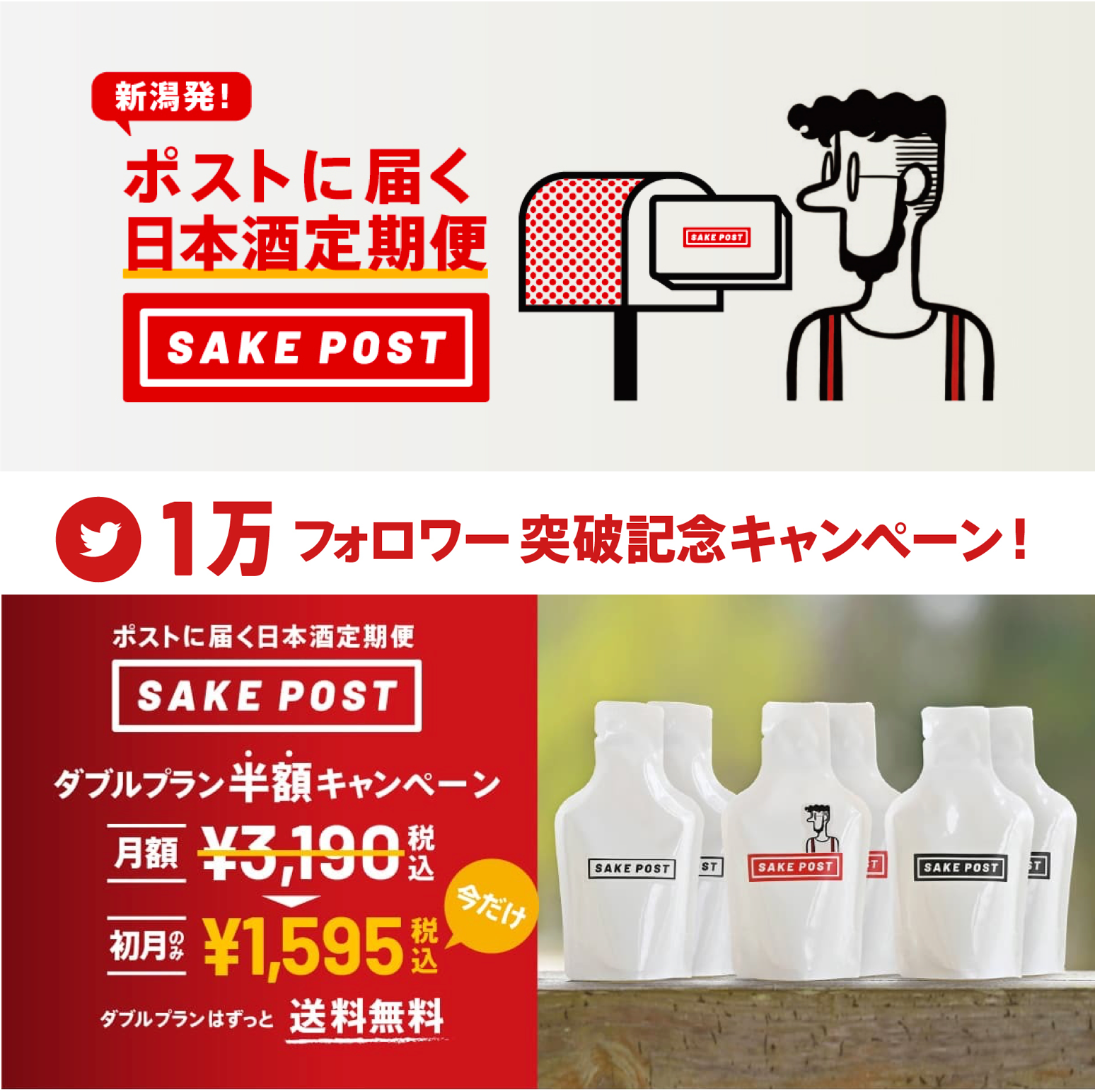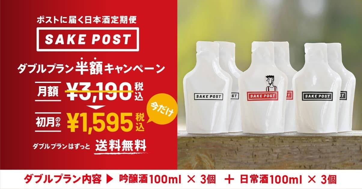 これを記念し、SAKEPOSTが毎月6銘柄ずつ届くダブルプランの価格を初月のみ半額の1,595円(税込)にてお届けするキャンペーンを開始することと致しました。