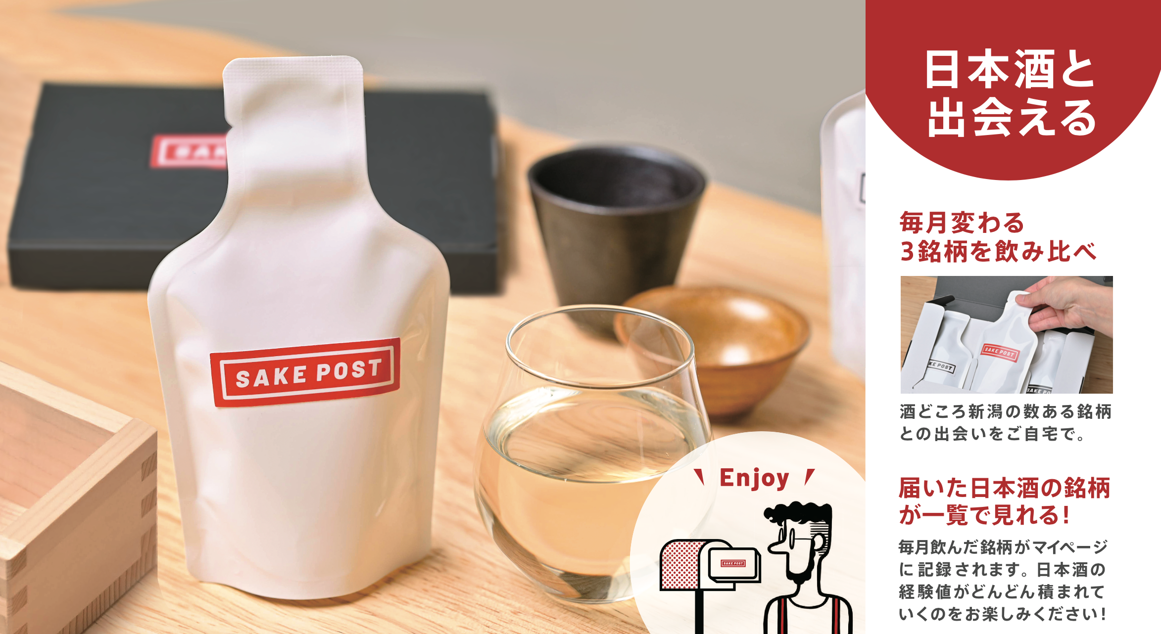6銘柄の日本酒を毎月自宅で飲み比べ。ポストに届く日本酒定期便「SAKEPOST」ダブルプランを初月半額のキャンペーン開始。味わいを楽しむ日本酒飲み比べのサブスク。