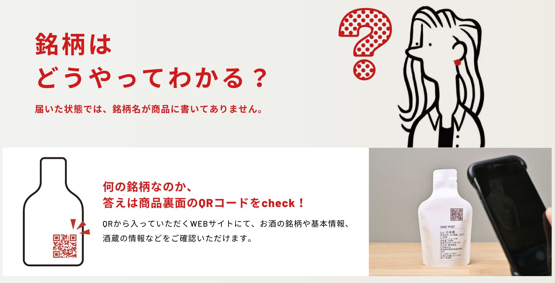 【特徴②】銘柄は飲んでみるまでわからない。QRコードから確認して味わいの違いを感じられる