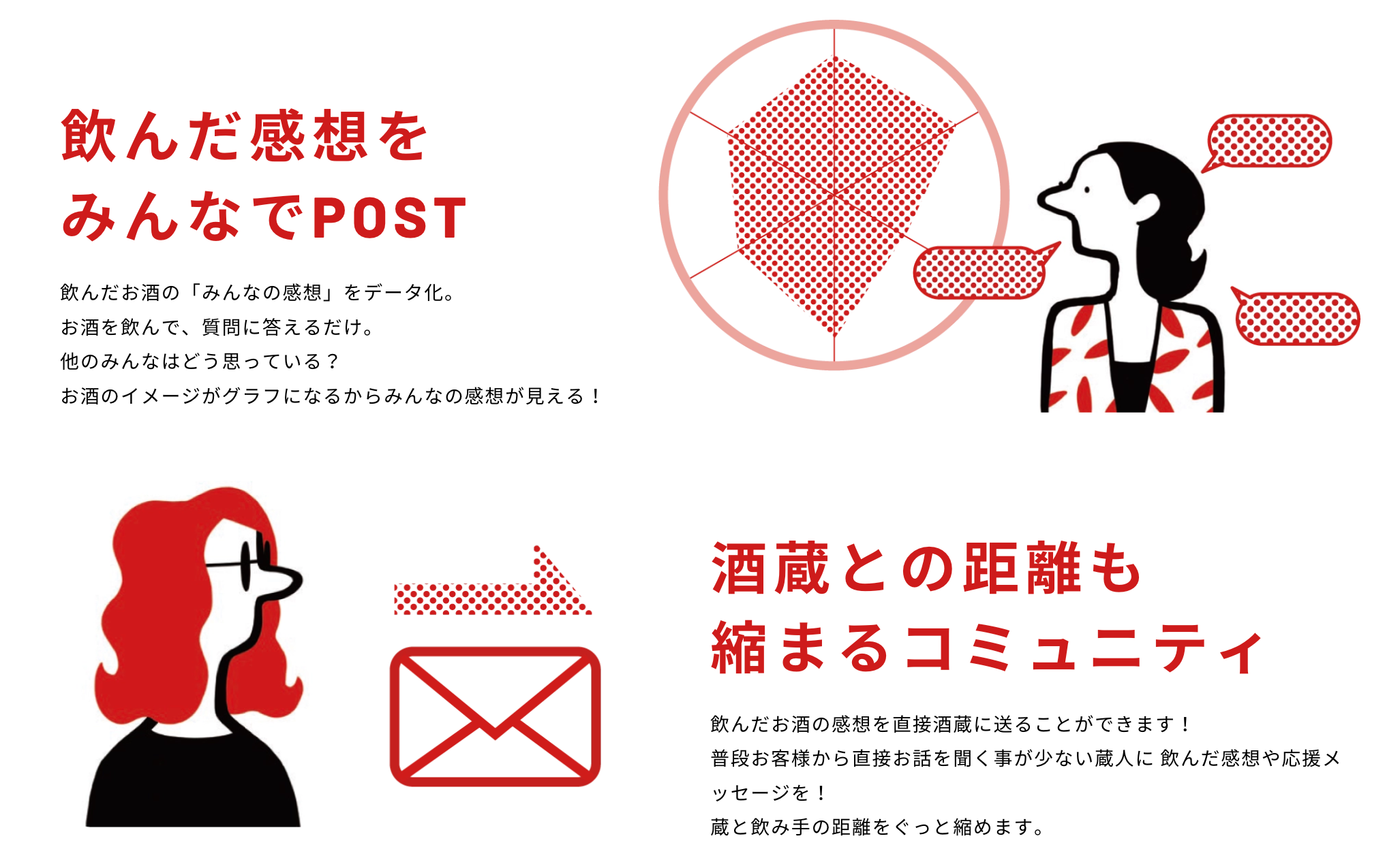 【特徴③】みんなで感想をシェアしたり酒蔵に感想を届けられるコミュニケーション機能