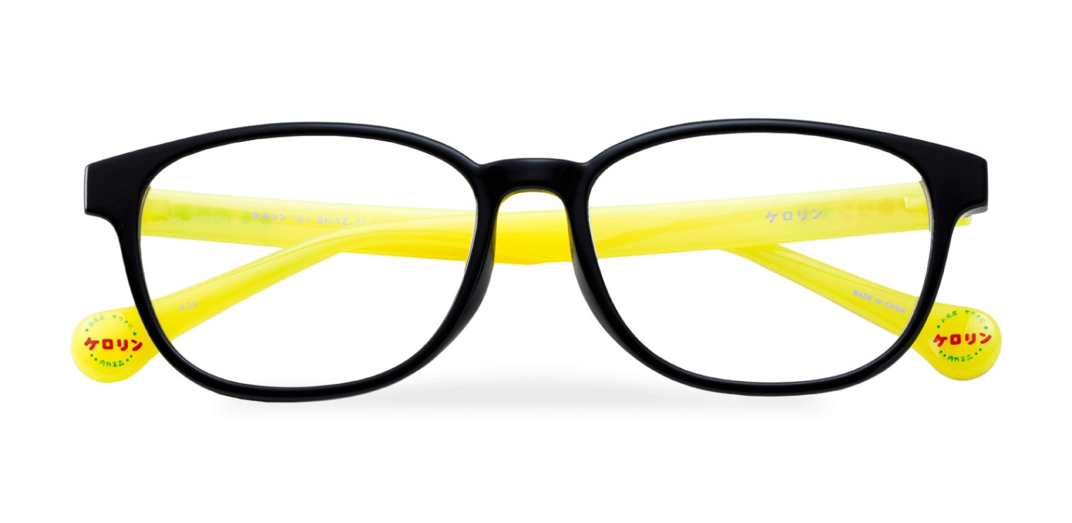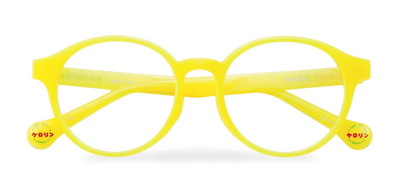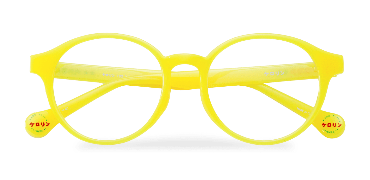 テンプルはケロリン桶カラーのイエロー。なかでもフロントまでイエローのモデルは、ケロリン桶をそのままメガネにしたようなデザインです!
