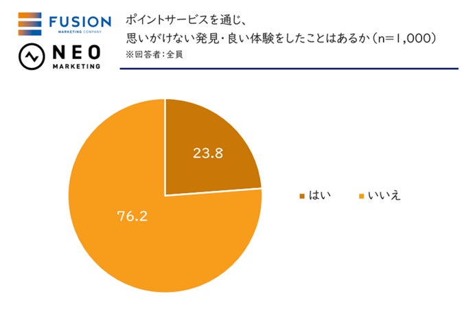 「ある」と回答した割合は23.8%で、5人に1人はポイントサービスを通じて、思いがけない発見・良い体験をしたことがあるという結果に。