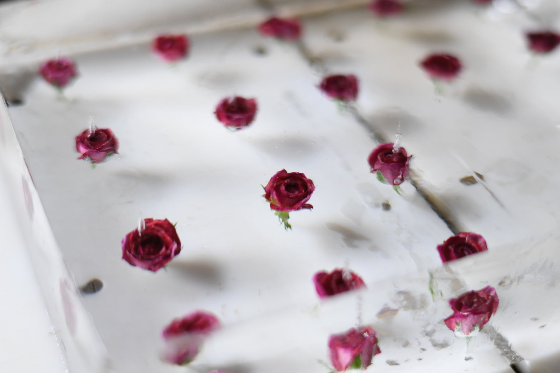 - 農薬不使用栽培の食用バラが氷のアート、そして薔薇のカクテルに変身