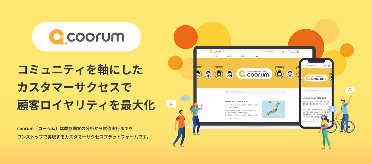 coorum(コーラム)は、既存顧客の分析から施策実行までをワンストップで実現するカスタマーサクセスプラットフォームです。「企業と顧客がつながる場」の提供によって多くのファンが生まれ、LTVの最大化を実現します。