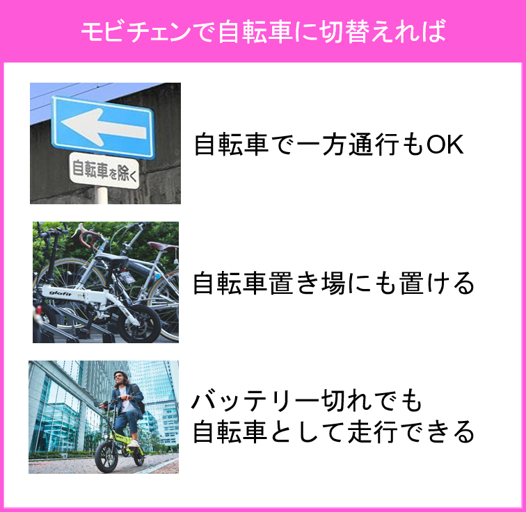- モビチェン付ハイブリッドバイクで便利になったポイント