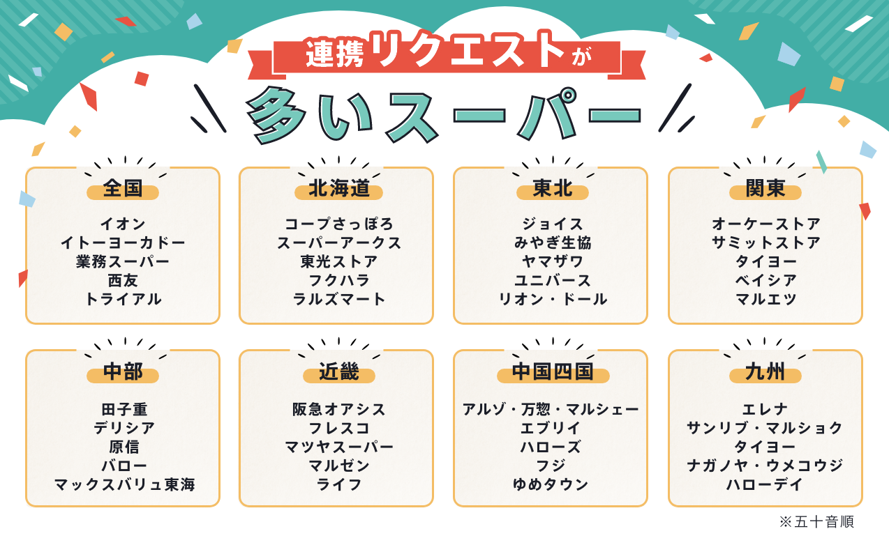 - SIRU+への連携リクエストが多いスーパーをエリア別に公開